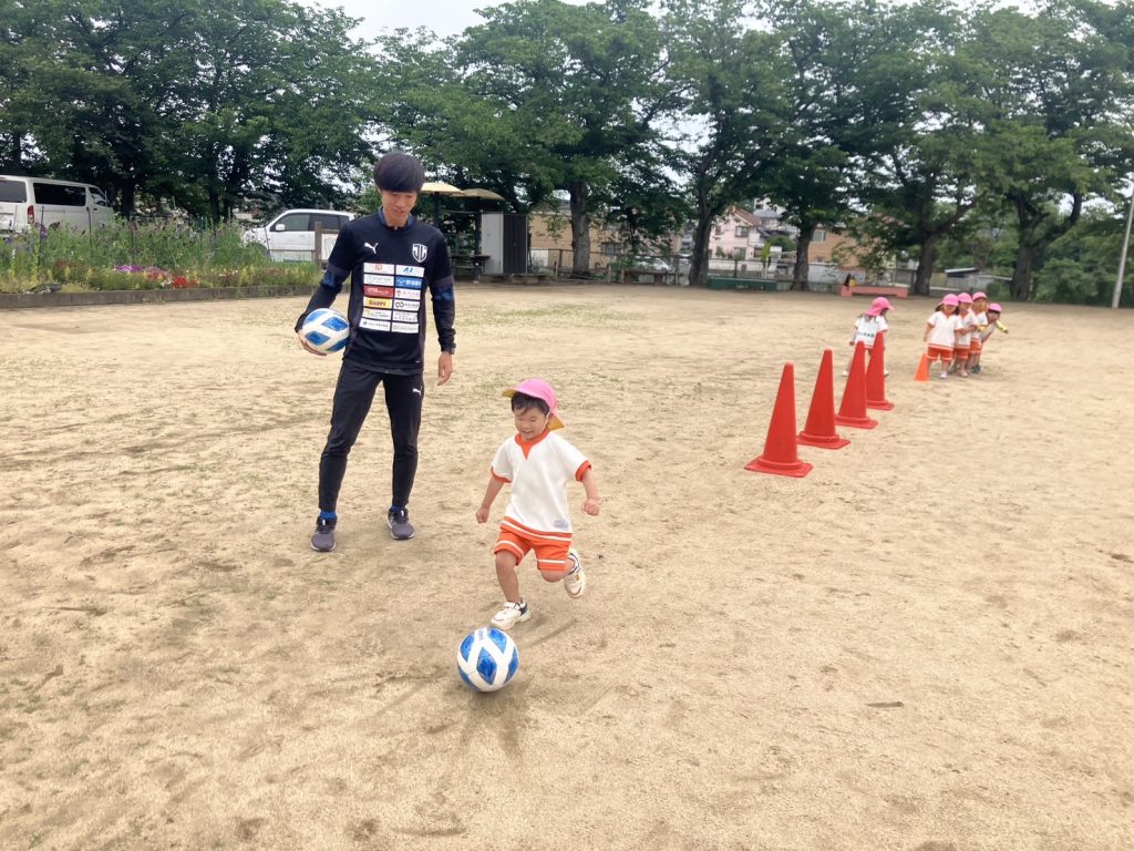 2025年5月26日(月)に木島悠選手、永松恭聖選手、池田達哉コーチ、大野春佑主務そして高松大樹CROの5名が大分市の慶光保育園の子ども達を対象にサッカー教室を行いました!!
