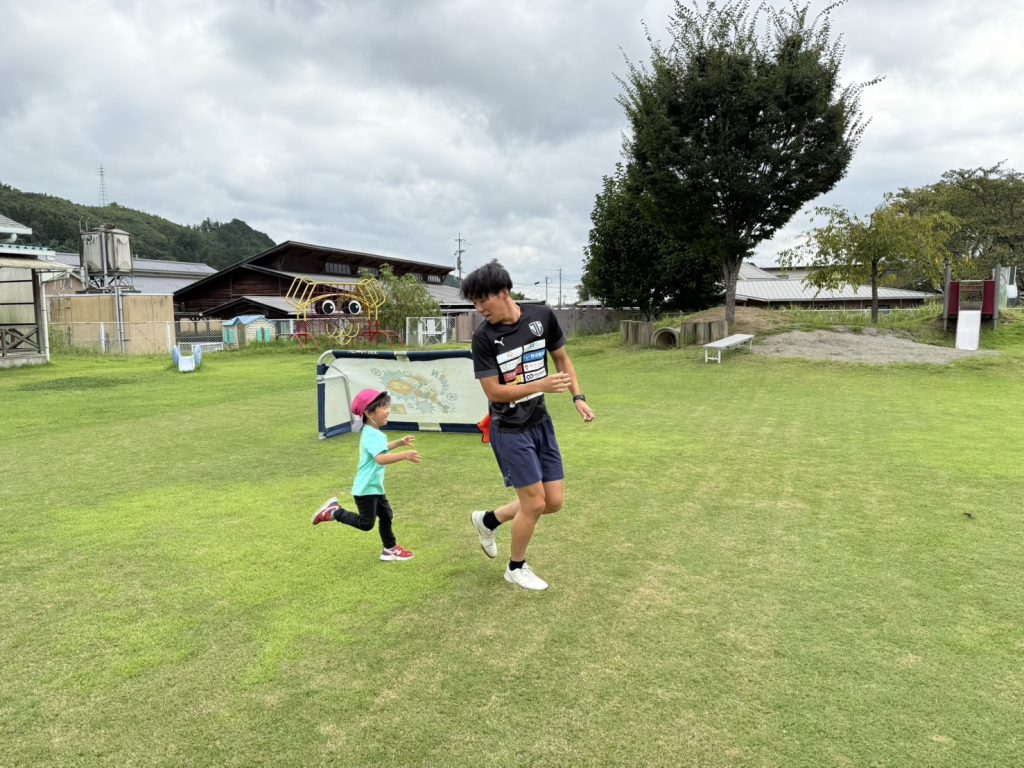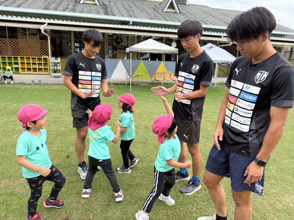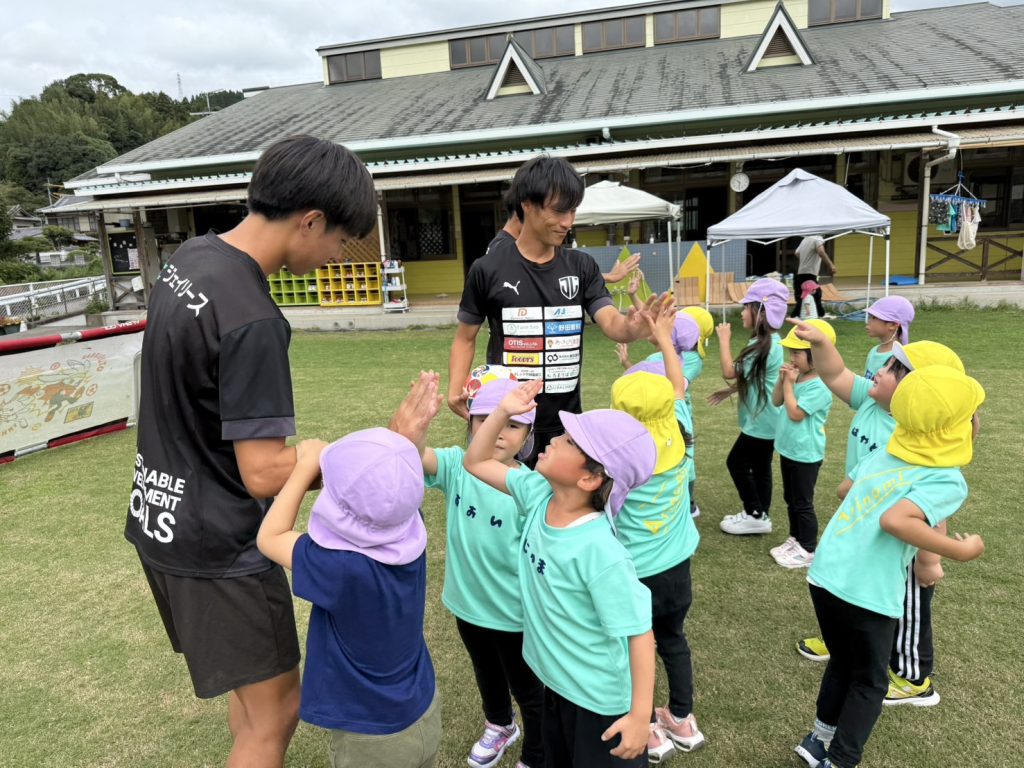 2025年9月22日(月)に木島悠選手、永松恭聖選手、鳥飼椋平選手の3名が由布市庄内町のありのみ保育園を定期訪問しました!!
