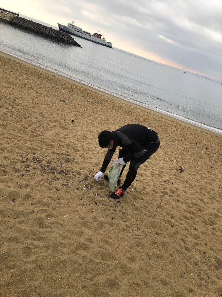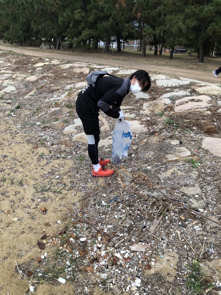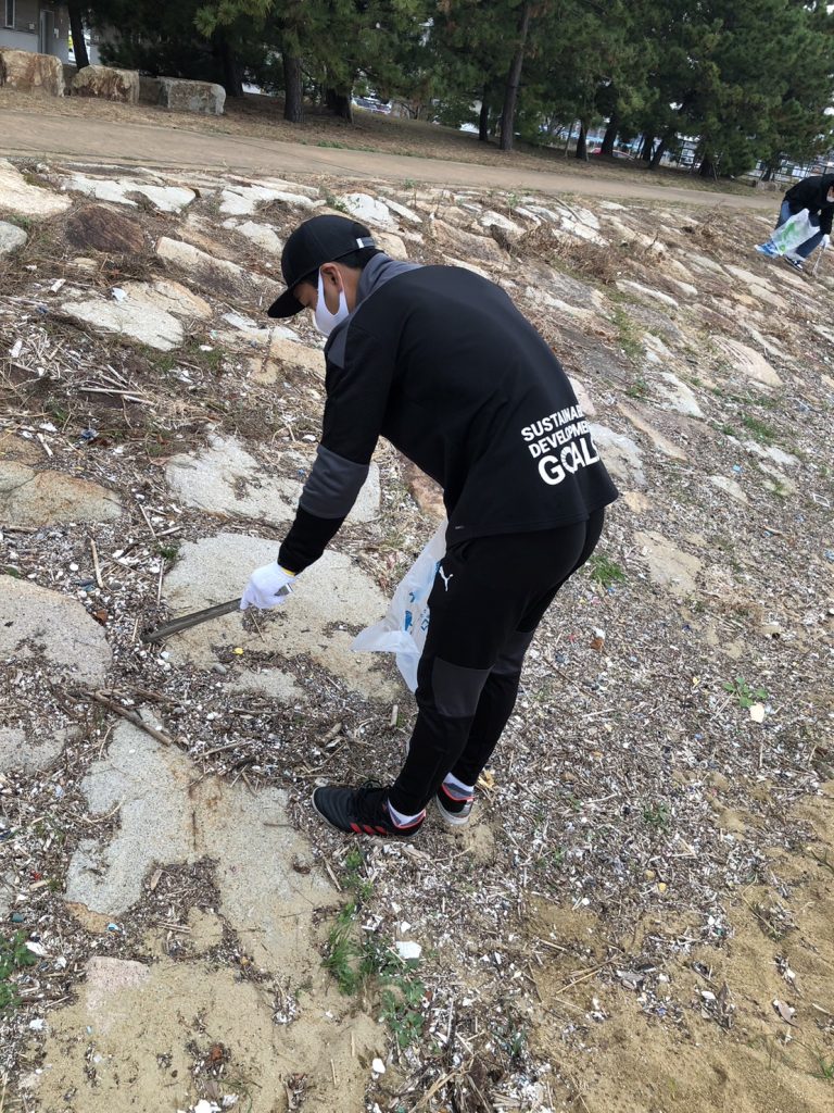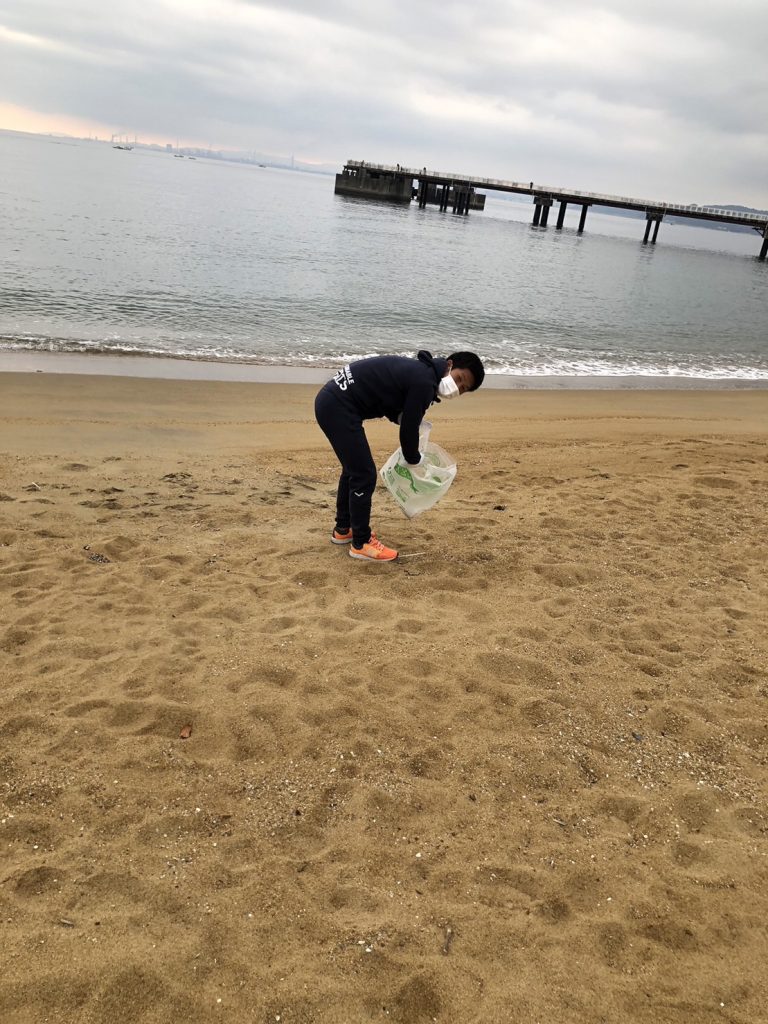 シーズン中は試合と重なり、なかなか参加できずにいたビーチクリーン活動。
