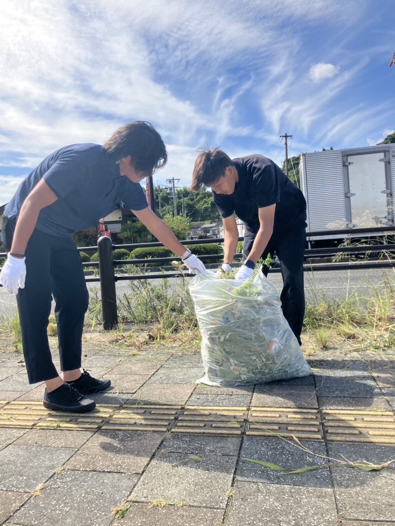 気持ちの良い秋晴れの朝、恒例のうつくし隊活動の一環として、大分市生石の歩道を清掃いたしました。