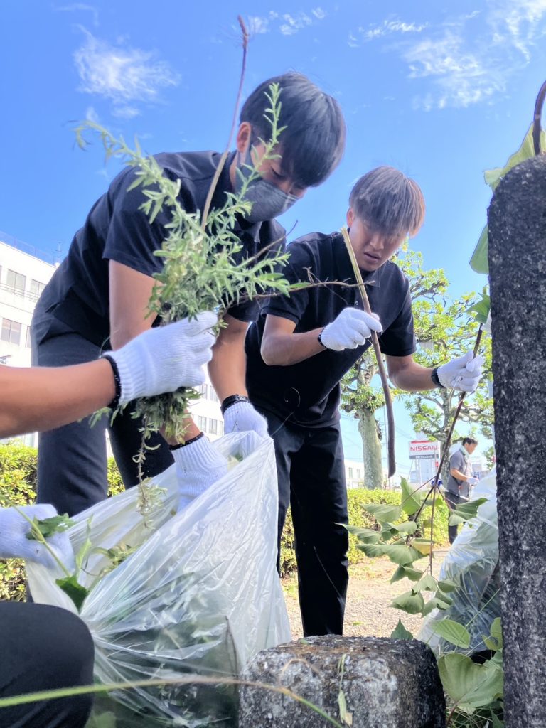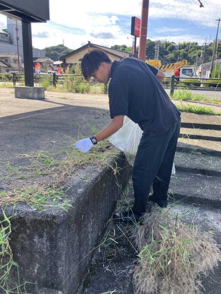 そのため、今回はキャプテン今吉晃平選手、林田隆介選手、大野主務、そしてジェイリースFC運営部スタッフにて、雑草の除草作業を行いました。