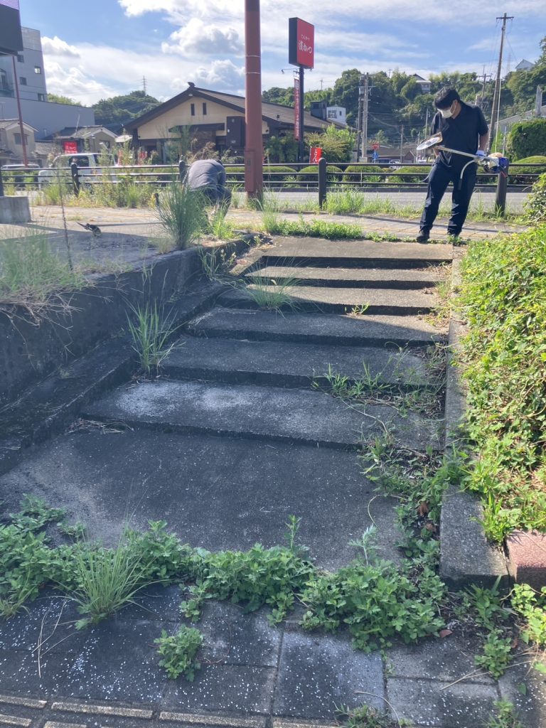 歩道と歩道を繋ぐこの緩やかな階段にも雑草が生えており、お子さんが足を取られる危険性もありました。