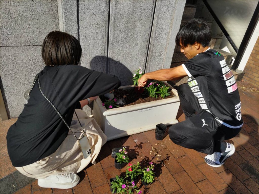訪れた際には、ジェイリースFCの選手が頑張って植替えをしたお花を、ぜひご覧下さい!