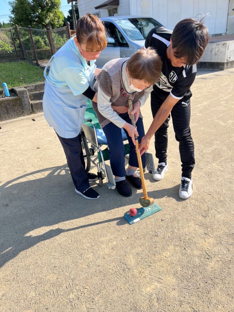 今回は利用者の皆さんとグラウンド・ゴルフにチャレンジです。