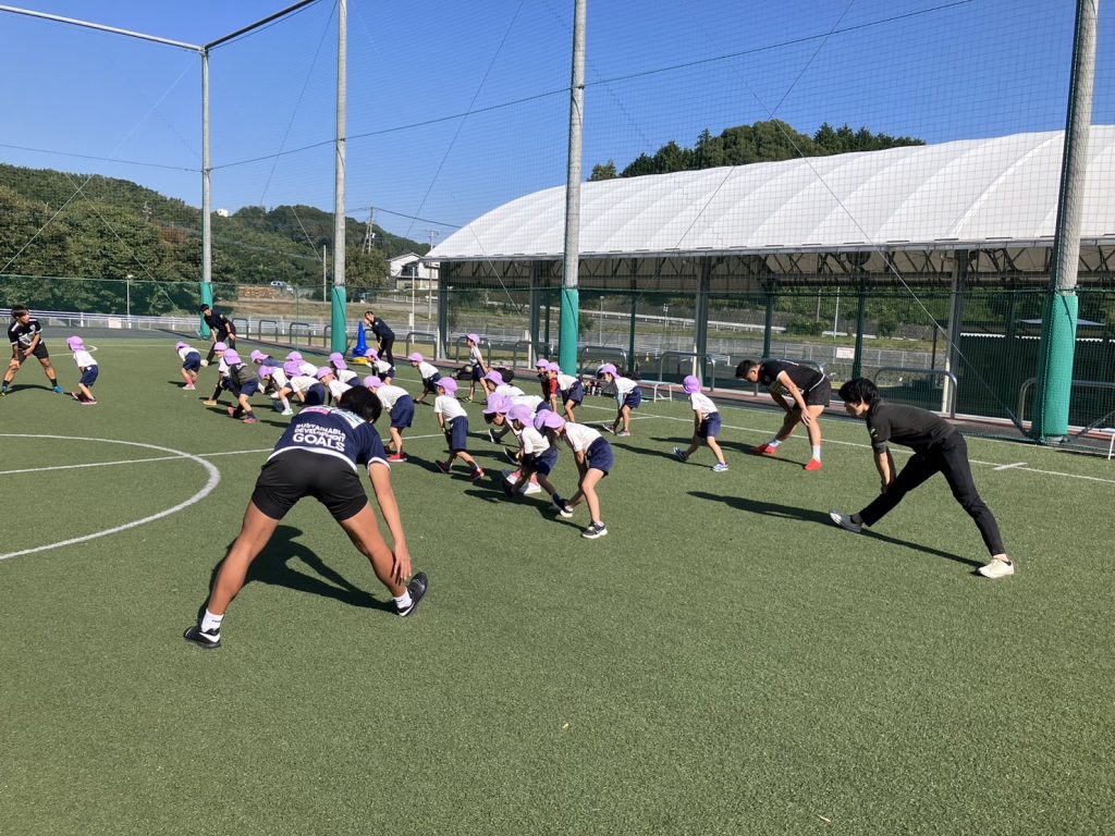 2023年11月1日(水)に、木島悠選手、岩﨑知瑳選手、池田達哉コーチ、大野春佑主務が、大分県速見郡日出町の日出やまとこども園の子ども達を対象にサッカー教室を行いました。