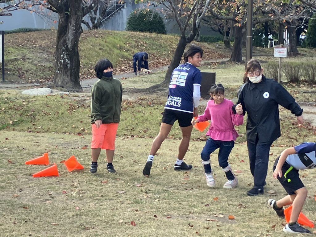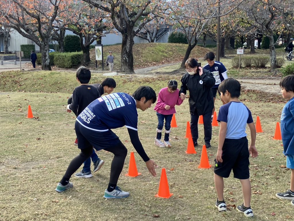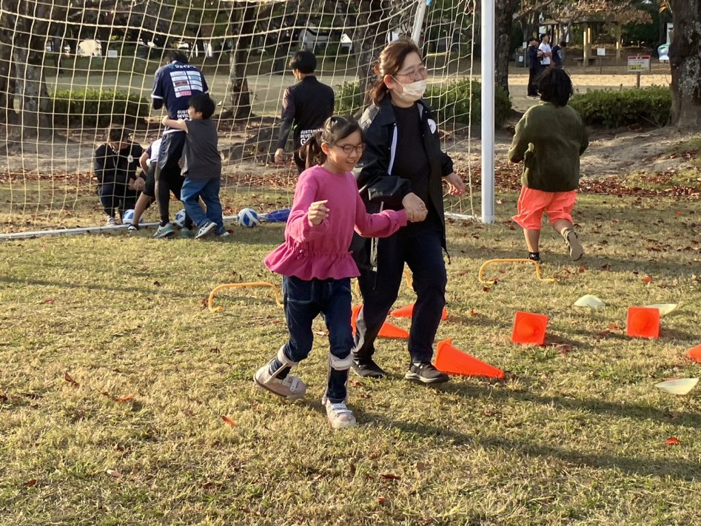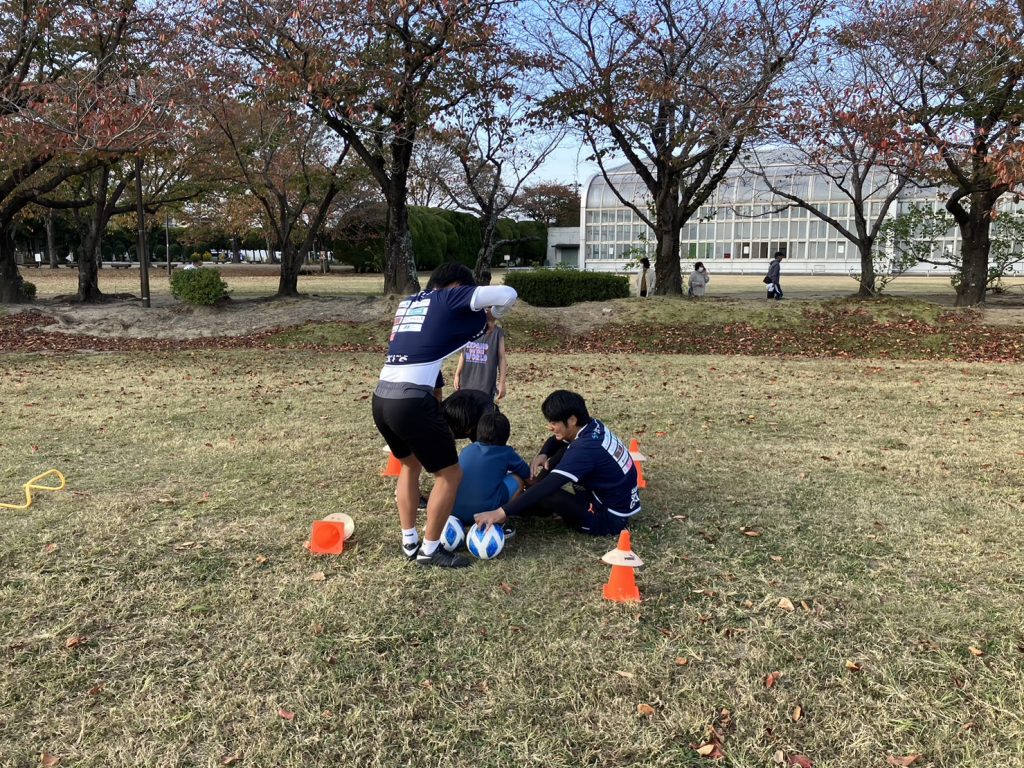周囲の木々の葉も色づき始めた中でしたが、この日は11月も中旬とは思えない温暖な気候となり、場所は広々として思いっきり走り回れる「南大分スポーツパーク」のグラウンドです。