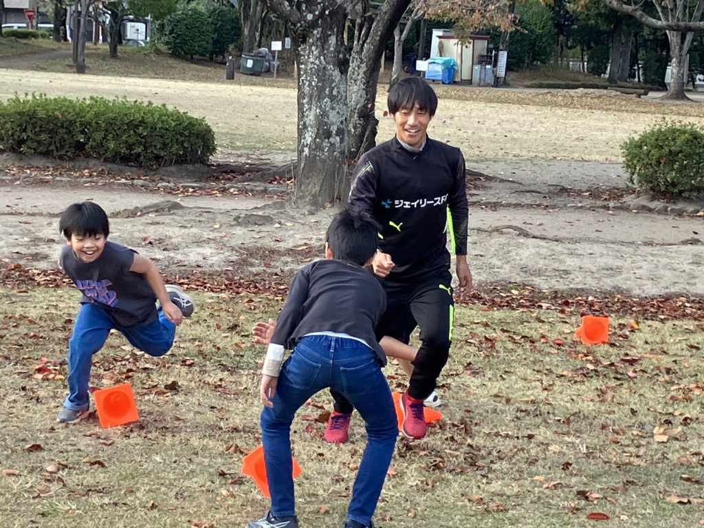 2023年11月15日(水)に、木島悠選手、池田達哉コーチ、大野春佑主務が、大分市の「のびのばlab」の子ども達を対象にサッカー教室を行いました。