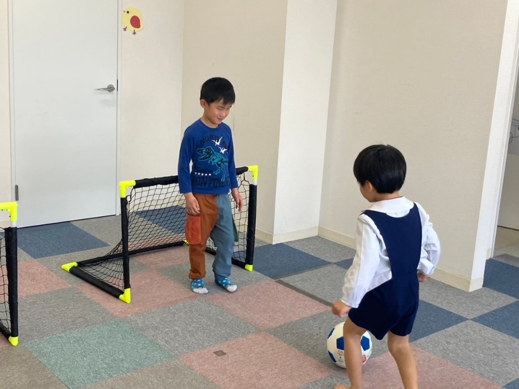 次はボールとミニゴールを使って体を動かしました。