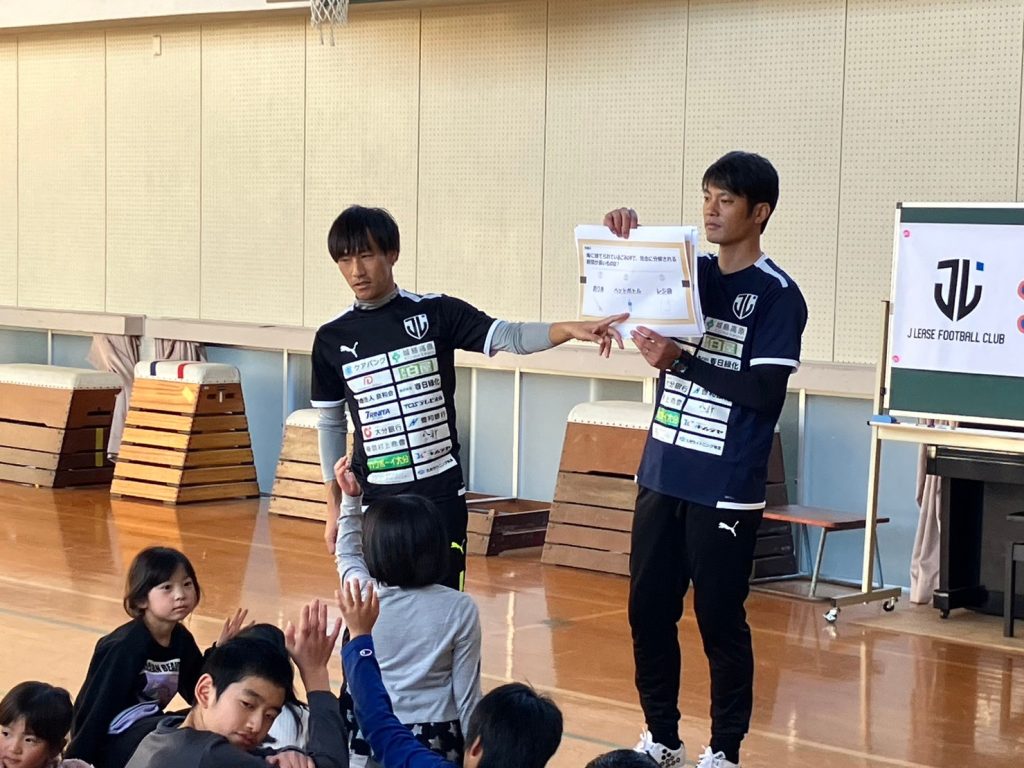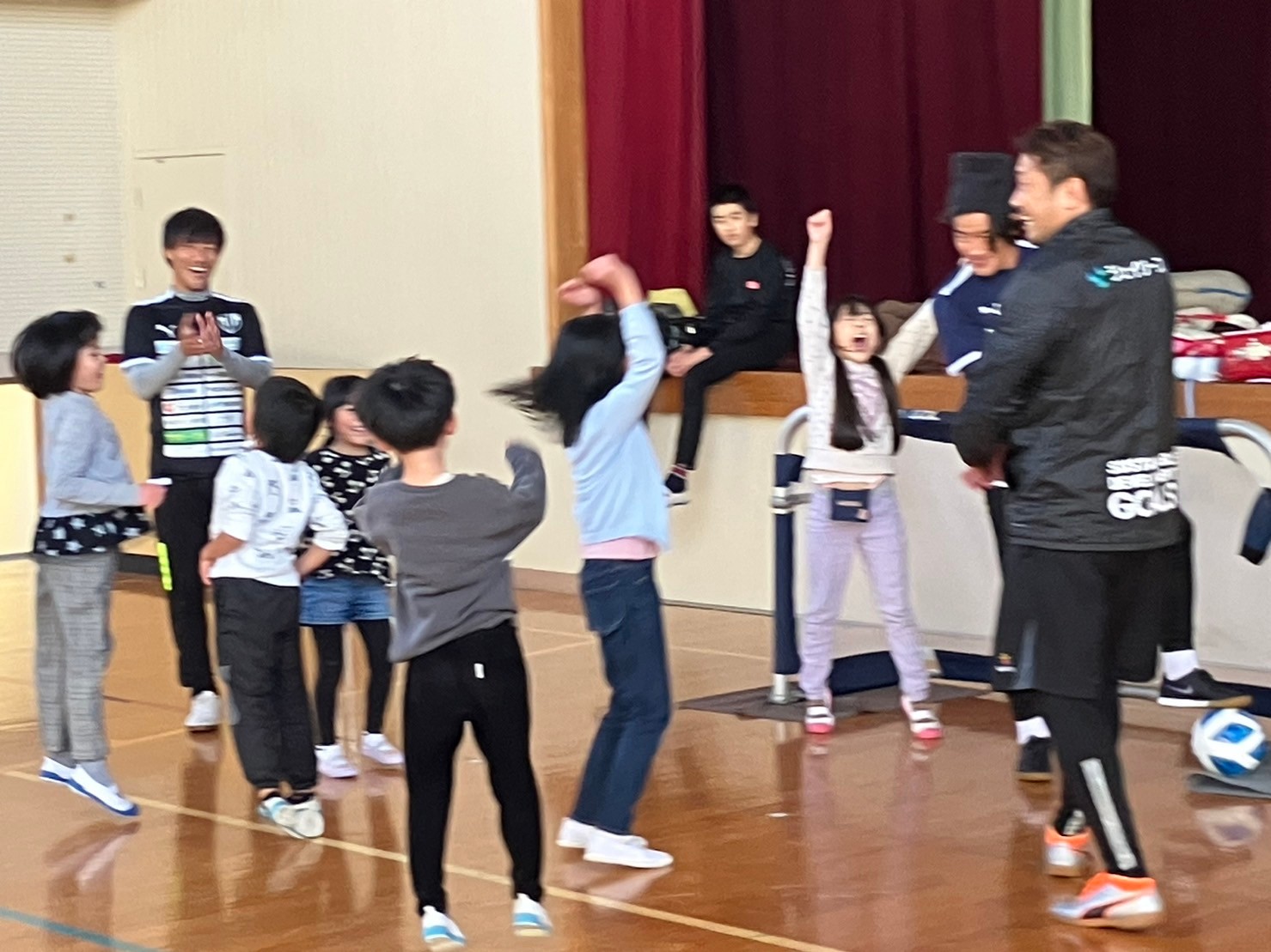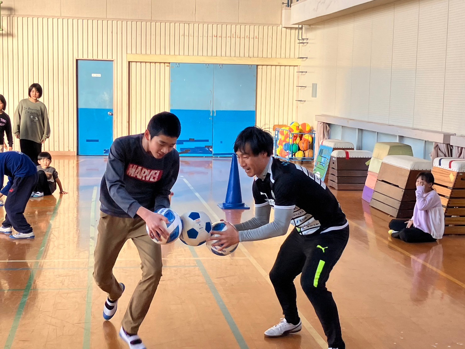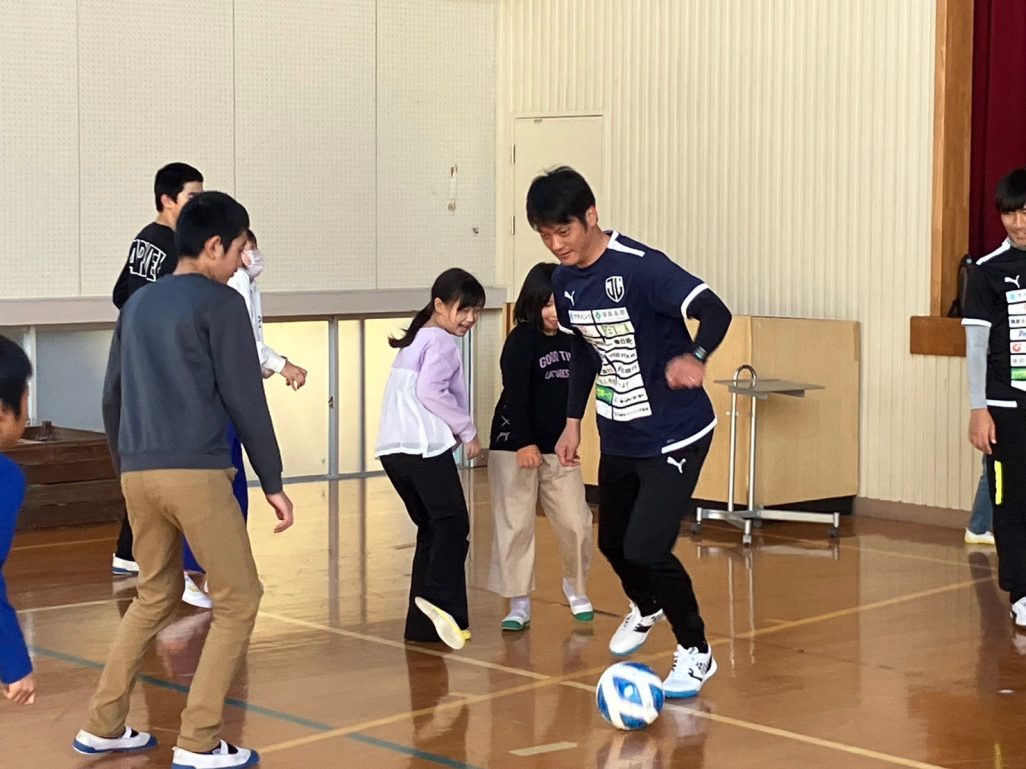 12月13日(水)に木島悠選手、池田達哉コーチ、大野春佑主務、そして高松大樹CROの4名が「放課後チャレンジ教室」で、豊後大野市立千歳小学校を訪問してサッカー教室を開催しました。