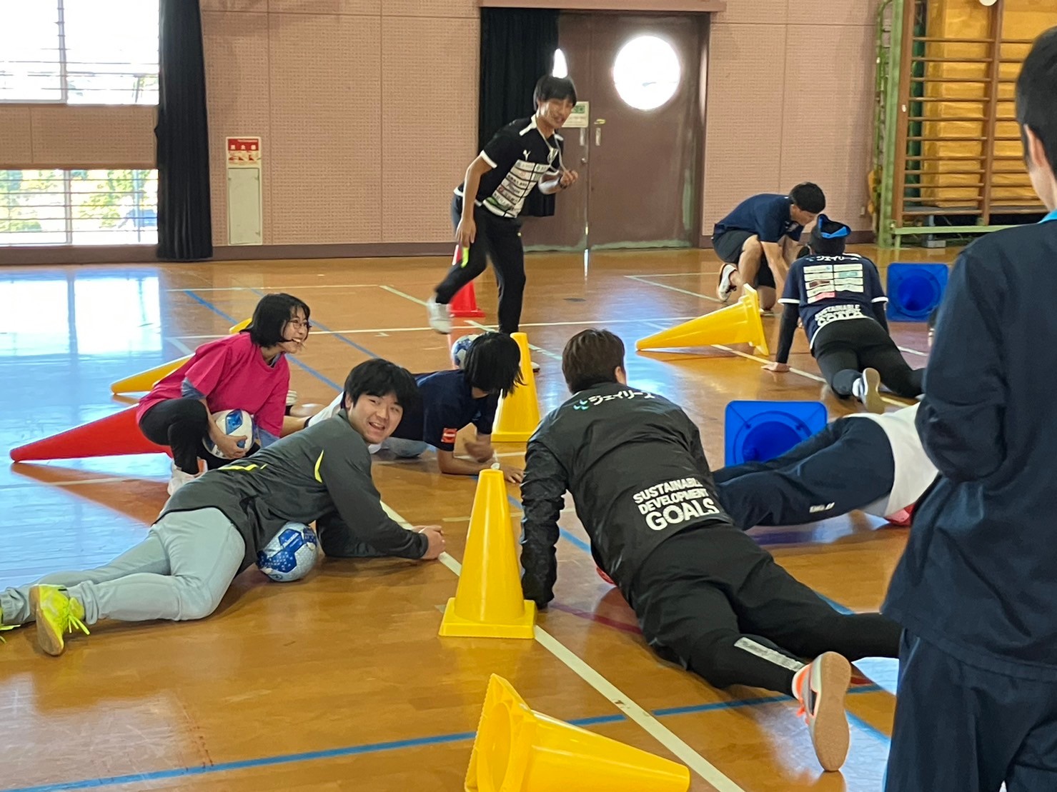 12月15日(金)に木島悠選手、高松大樹CRO、大野春佑主務の3名が大分県立大分支援学校を訪問して、高等部の生徒達で5ヶ月前に結成されたばかりという「フットサル部」のメンバーを対象にサッカー教室を開催しました。