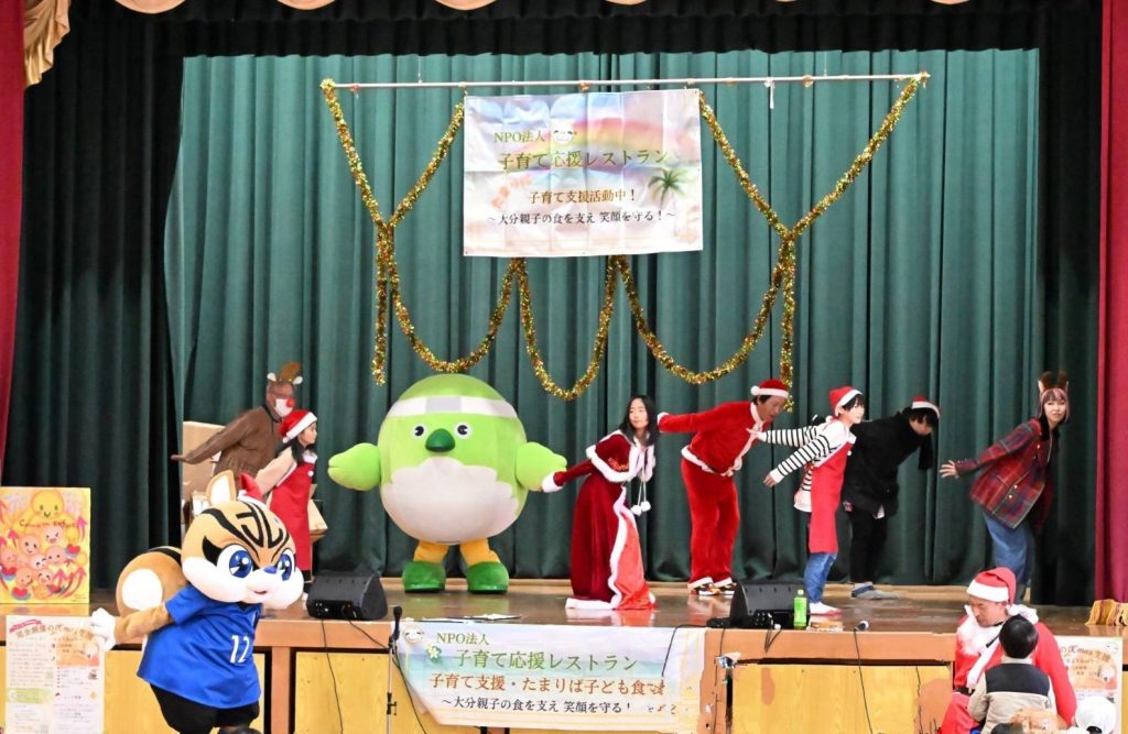 12月25日(月)のクリスマス当日、大分支援学校にて行われたNPO法人子育て応援レストラン「トンネルをぬけると・・・たまりば」さん主催のイベント「完全無償のX’mas支援」に、木島悠選手、薗田卓馬選手、佐藤昂洋選手、そして高松大樹CROとジェイくんが参加しました。