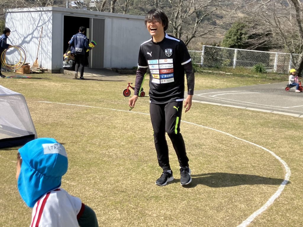 3月18日(月)に、木島悠選手、遠藤純輝選手、池田達哉コーチが由布市庄内町のありのみ保育園でサッカー教室を行いました。