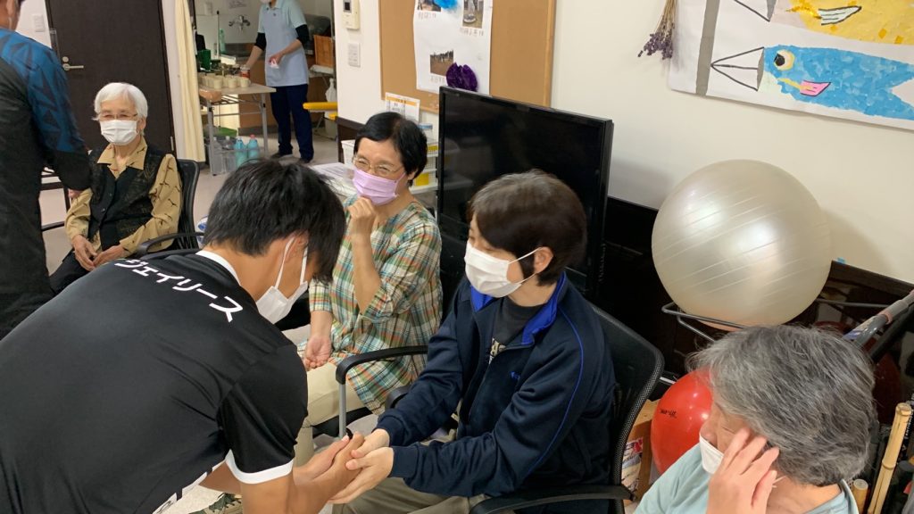 利用者の皆さんがとても丁寧に握手をして下さるので、心温まる瞬間です。