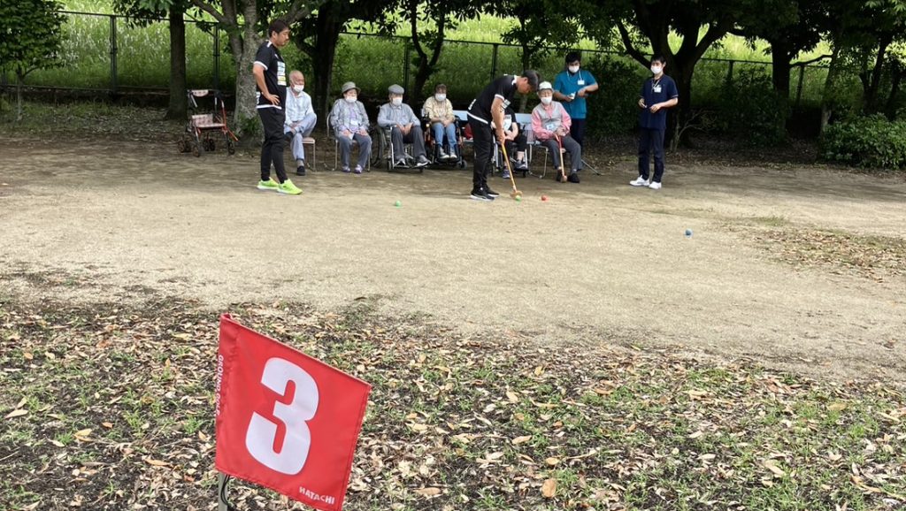当日はお天気が良かったので、屋外でグラウンド・ゴルフを楽しみました。