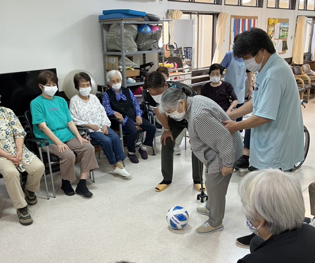 今回は最初に後出しジャンケンをして、その後は木島チーム、高松チームに分かれてサッカーボウリングを楽しみました。