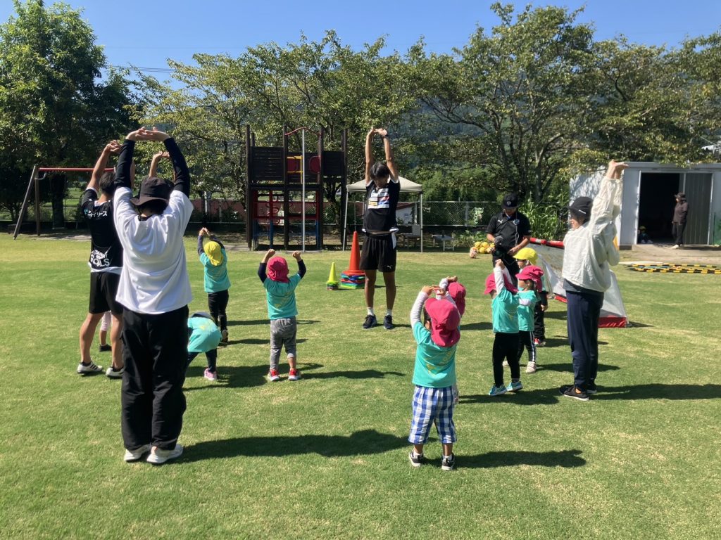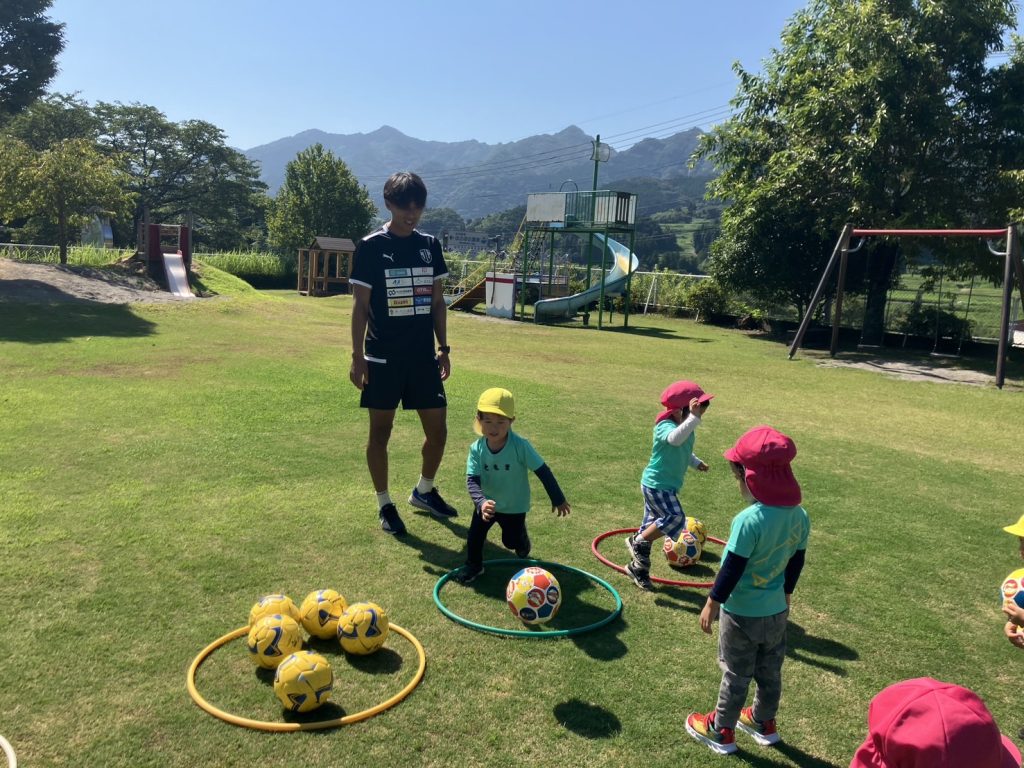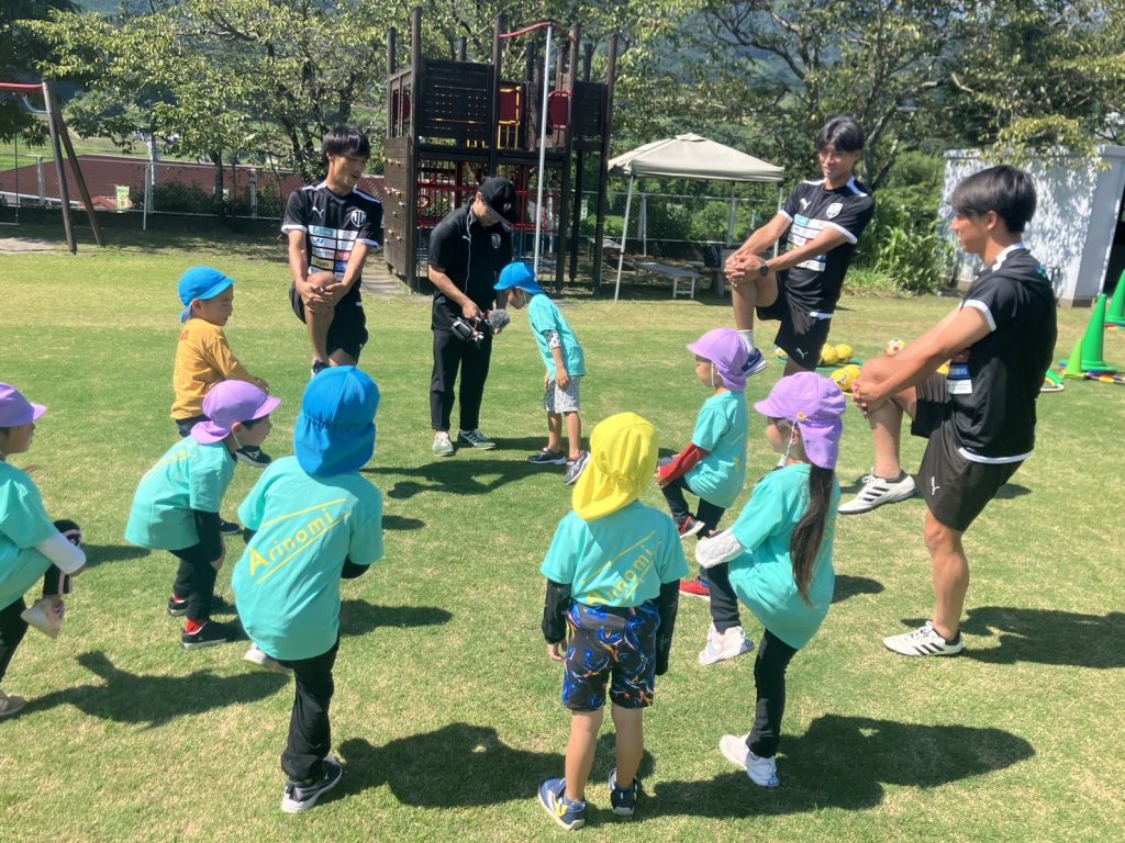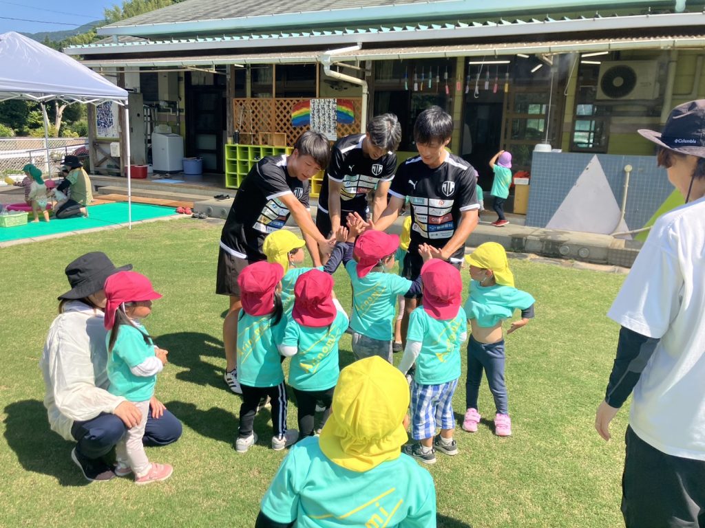 8月8日(木)、木島悠選手、藤井航大選手、延祐太選手が由布市庄内町のありのみ保育園を定期訪問しました。