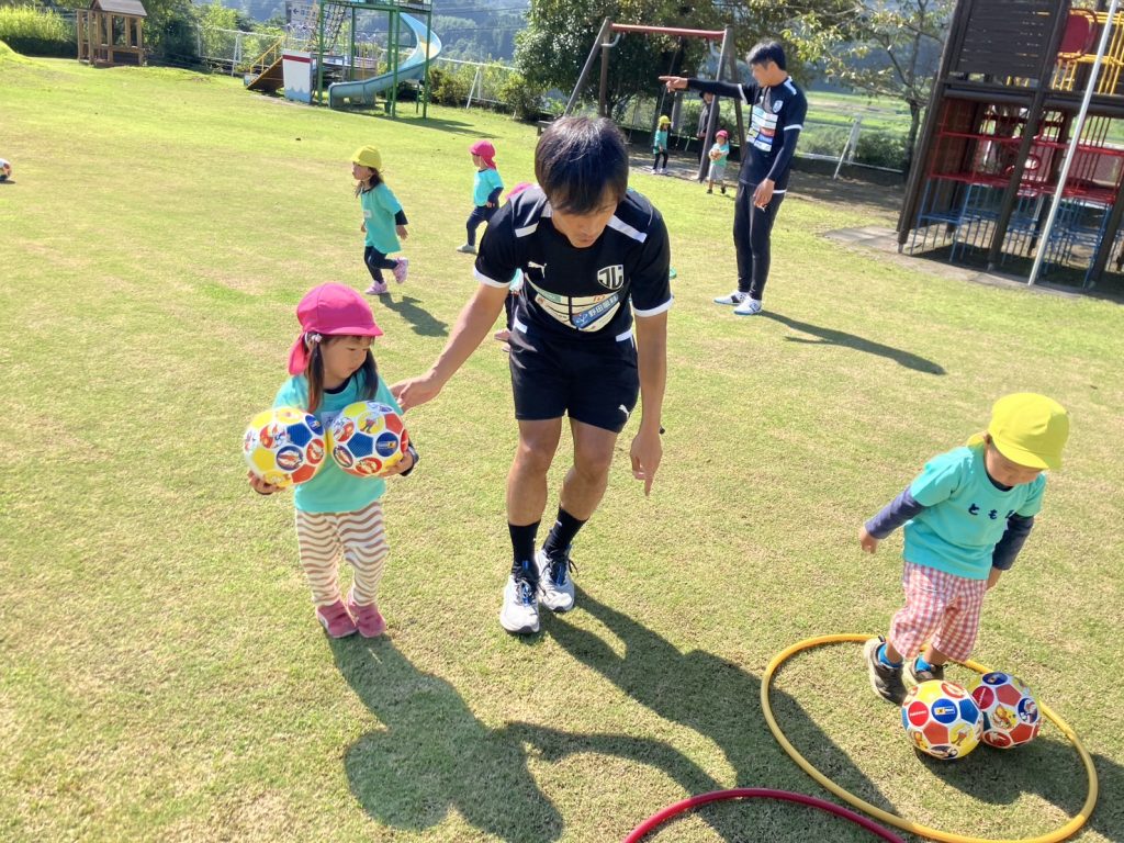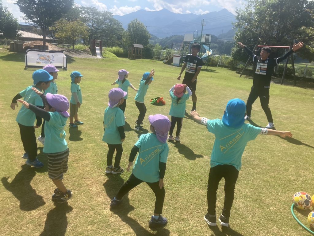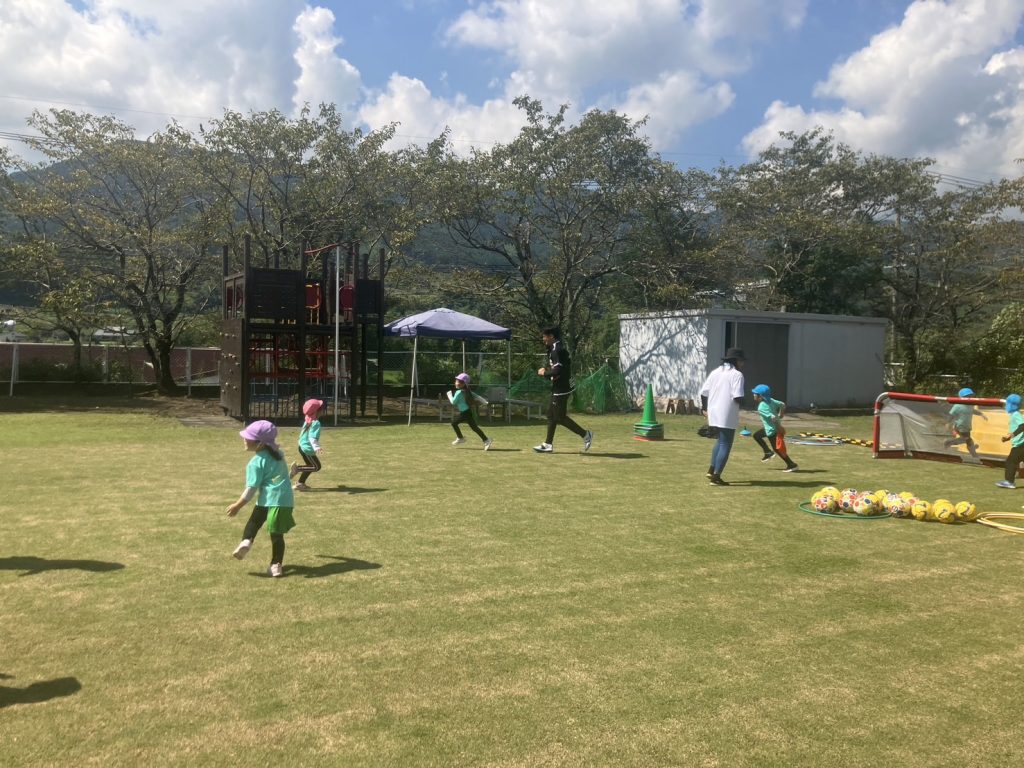 9月に入り朝晩は少し涼しくなってきたものの、昼間の日差しはまだまだ暑く、ちびっこ達もこまめに水分補給をしながら体を動かしました。