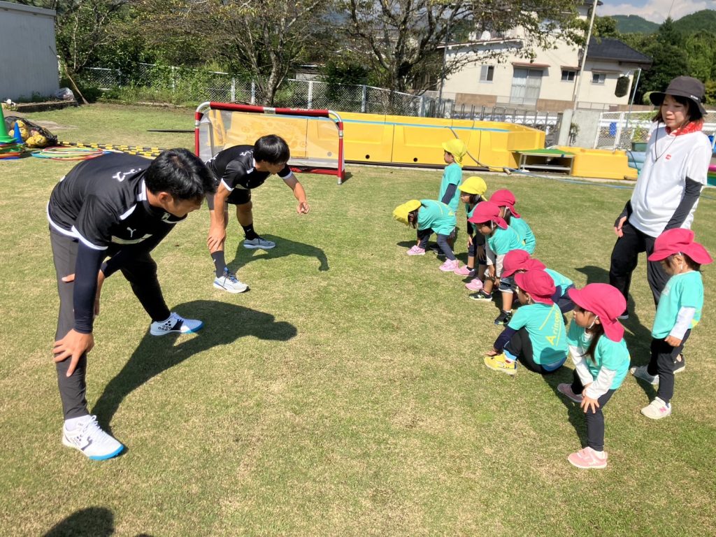 9月2日(月)に、木島悠選手、池田達哉コーチが由布市庄内町のありのみ保育園を訪問しました。