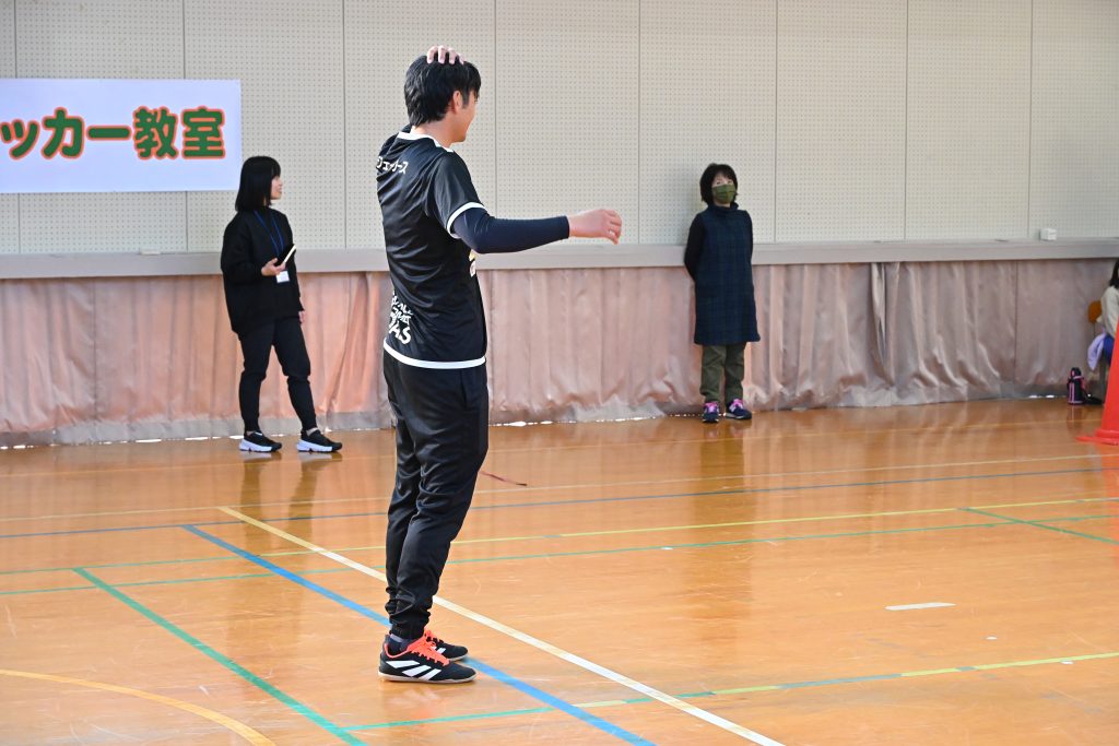 千歳小学校体育館にて小学1年生から6年生までを対象としたサッカー教室を行いました。