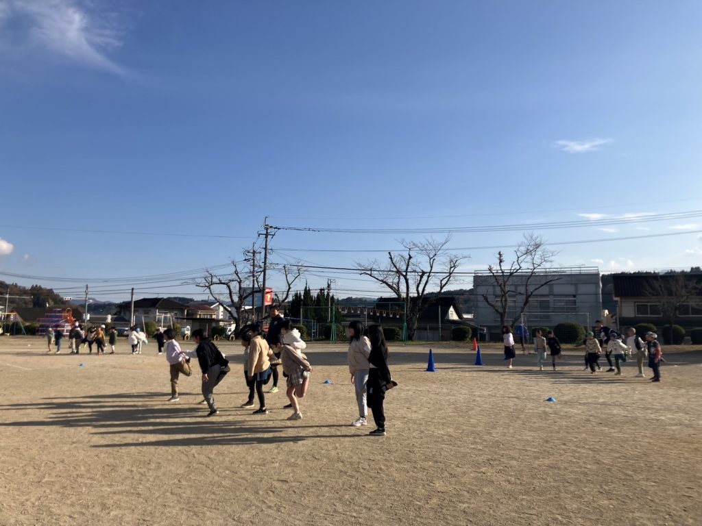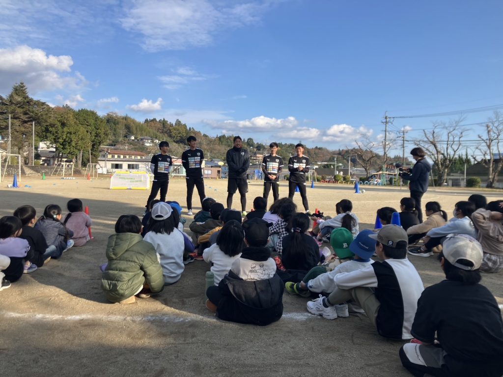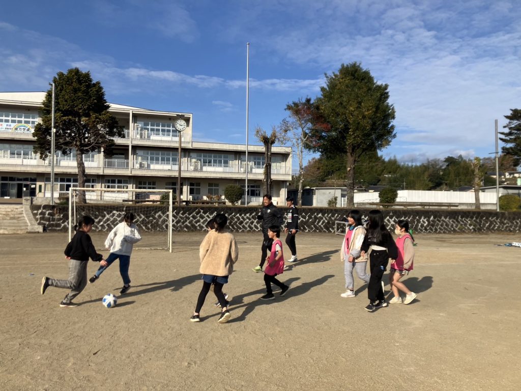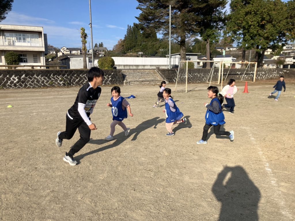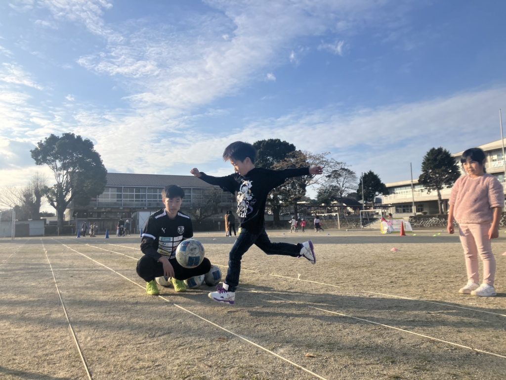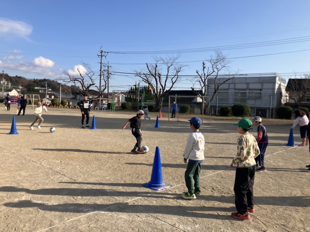 12月11日(水)に緒方小学校運動場にて小学校1年生から6年生までの41名を対象にサッカー教室を行いました。