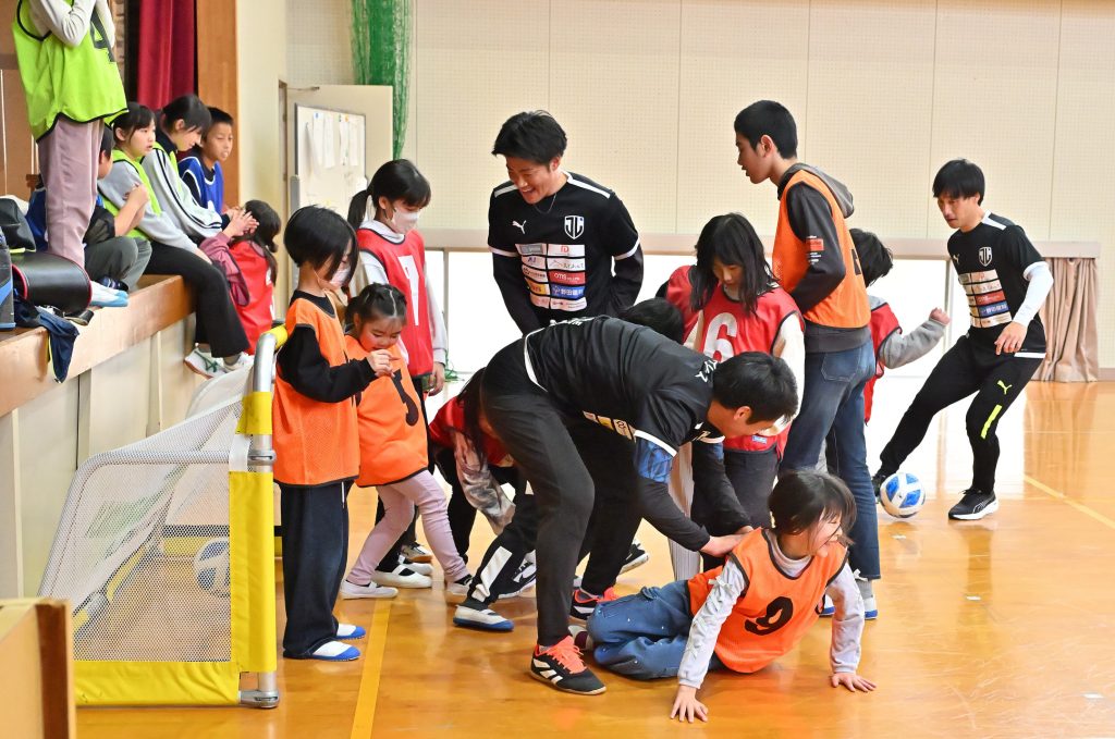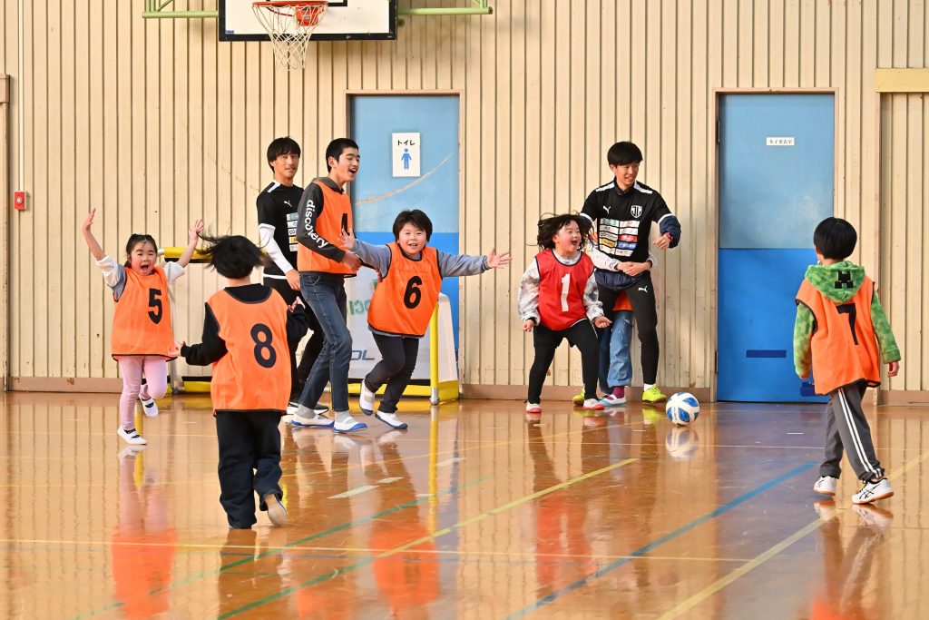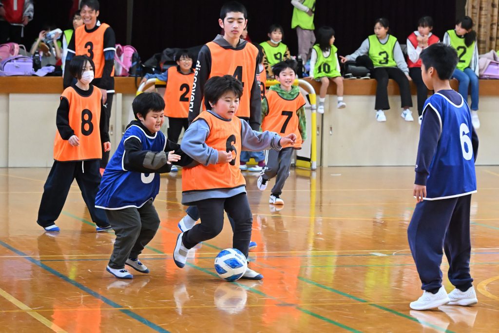 1月22日(水)に千歳小学校体育館にて、小学1年生から6年生までを対象としたサッカー教室を行いました。