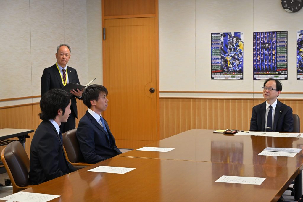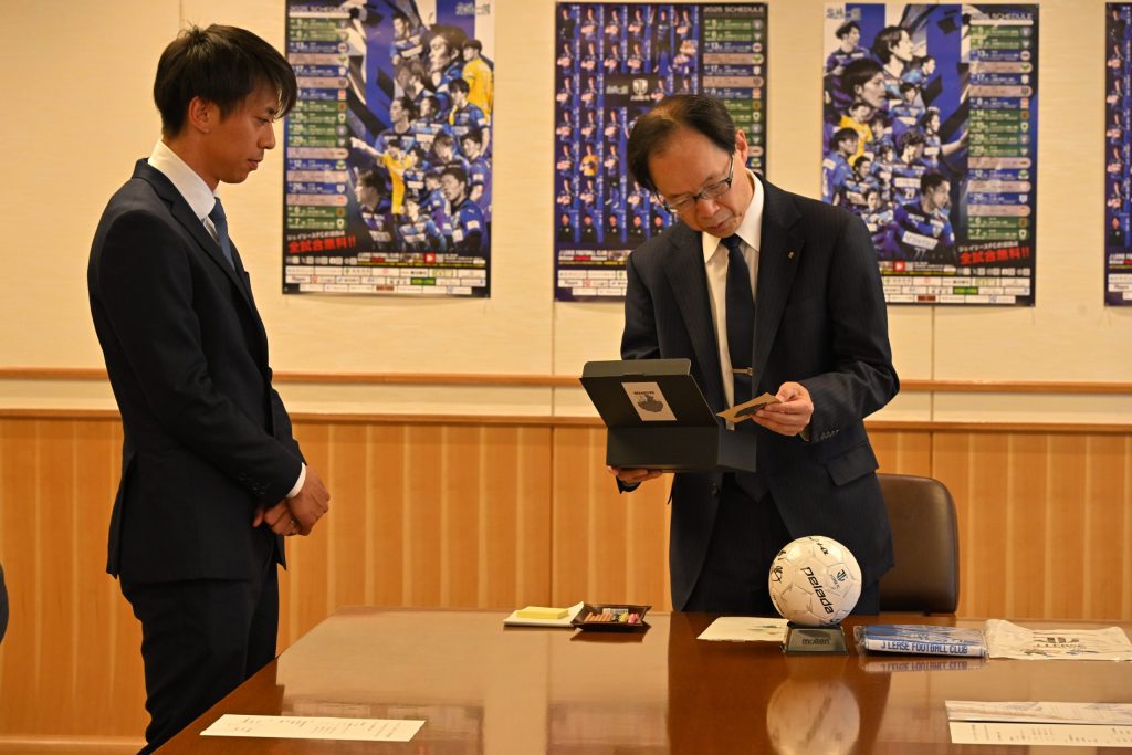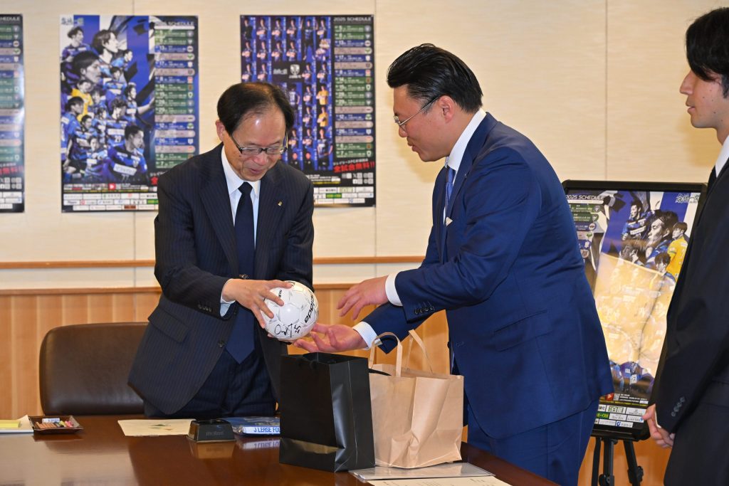 県知事からは昨年の全国地域サッカーチャンピオンズリーグ2024や地域貢献活動の話題もあり、終始和やかな雰囲気での訪問となりました。