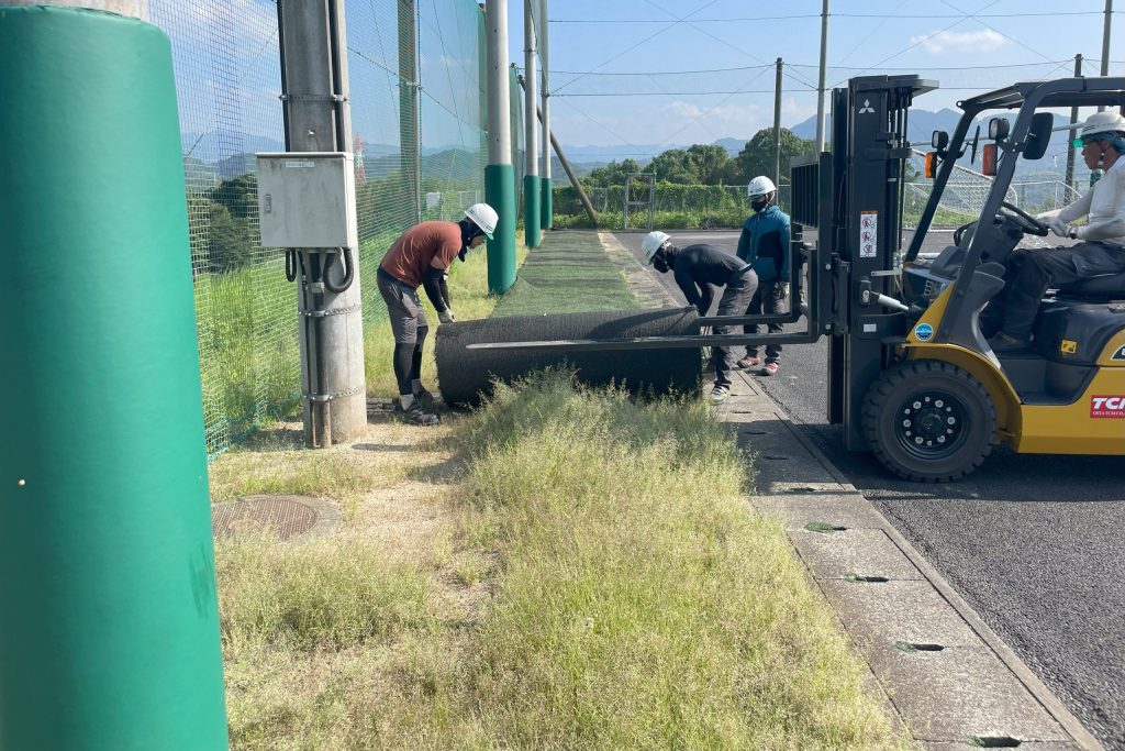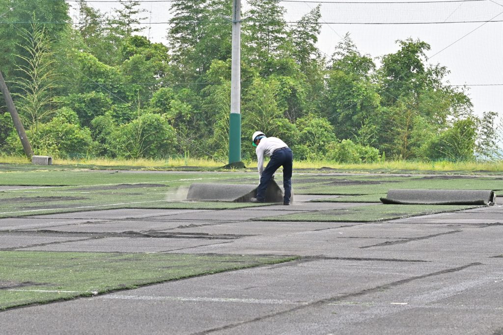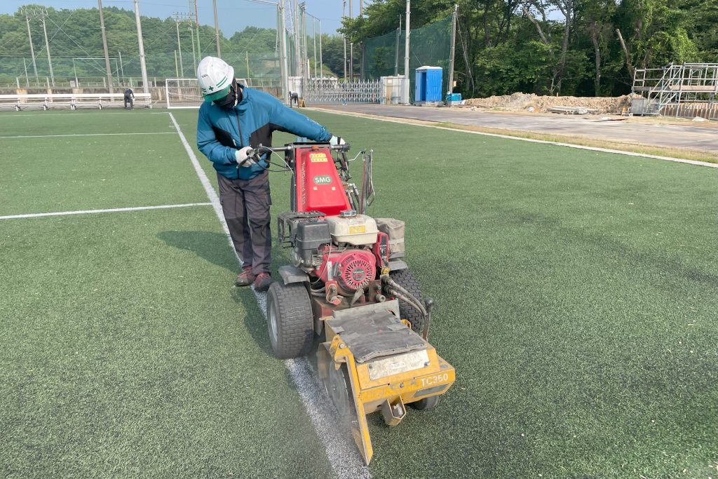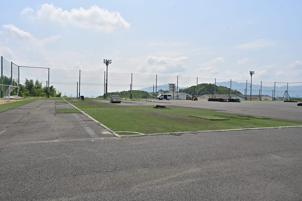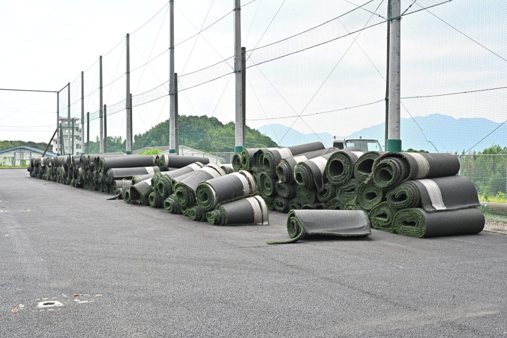南側はほぼ人工芝の撤去が完了し、アスファルトが露出しています。