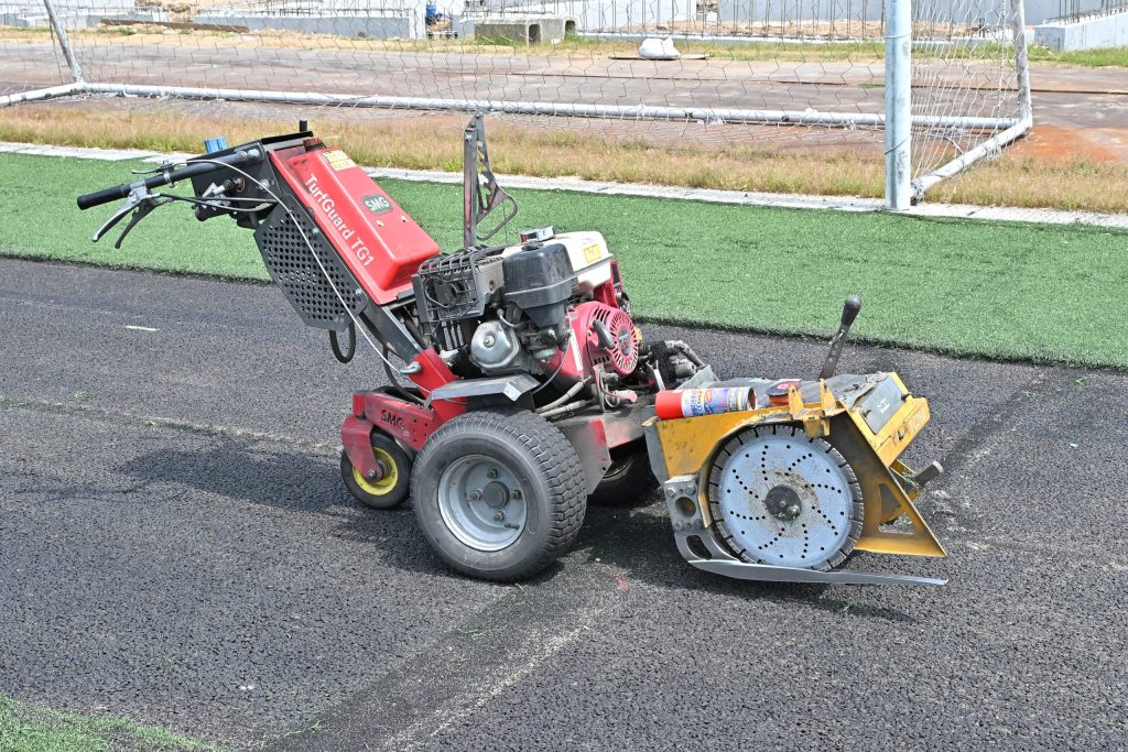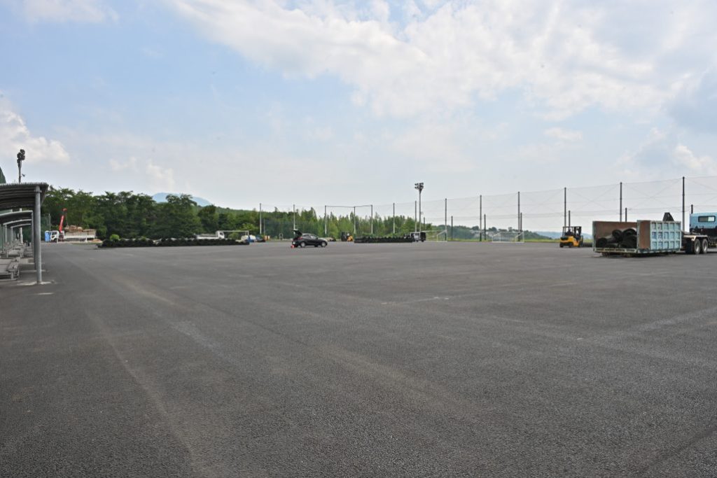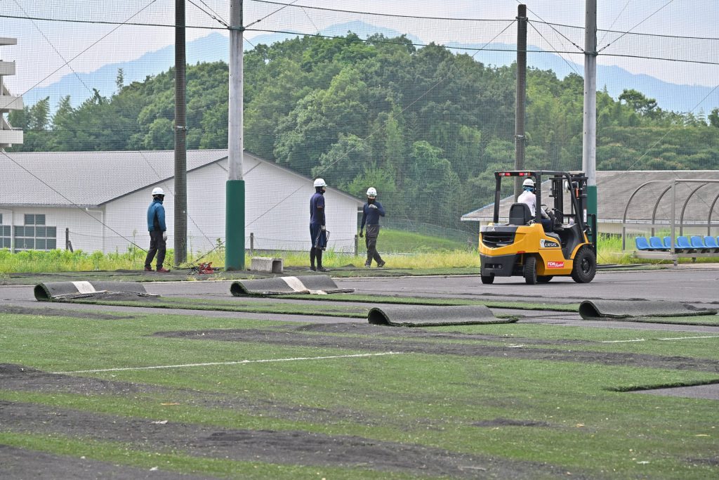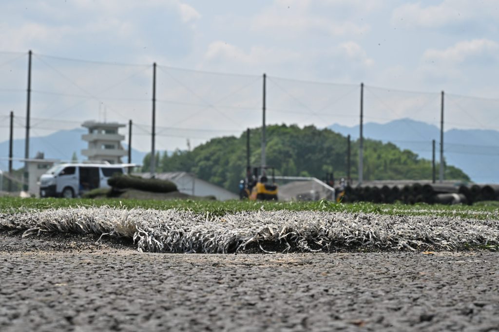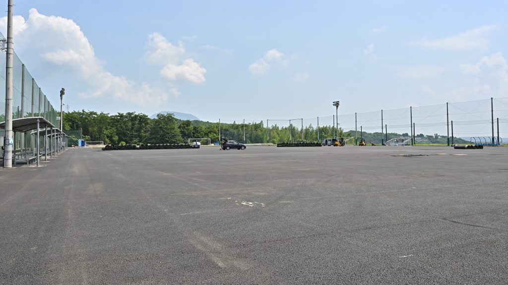 南側はほぼ人工芝の撤去が完了し、アスファルトが露出しています。