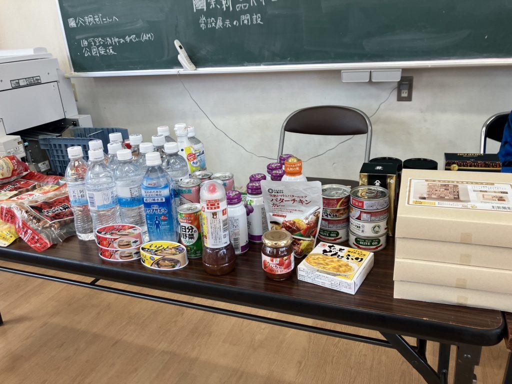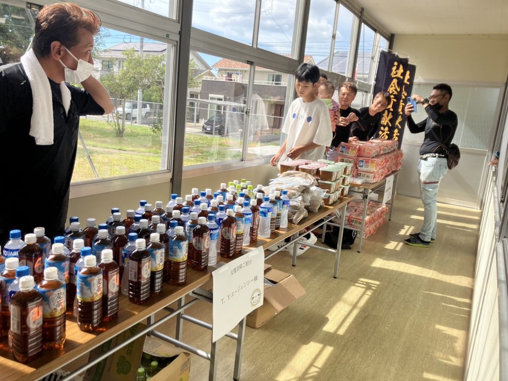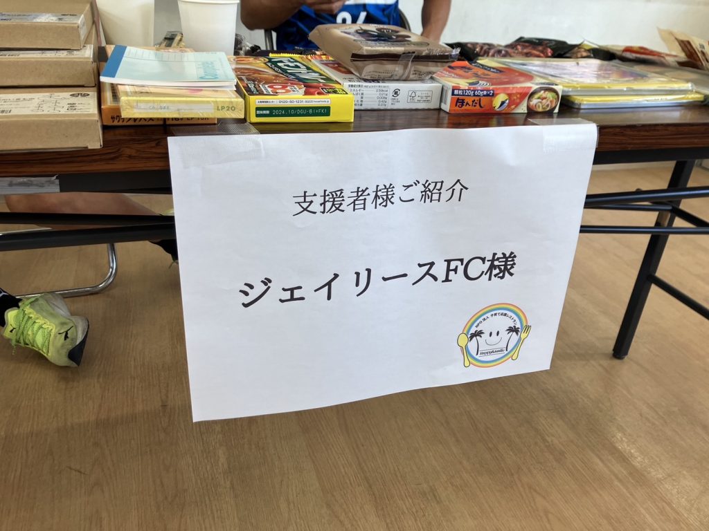 ジェイリースFCからも、試合時にフードドライブで集められた文房具や食料品などの支援品を配布しました。
