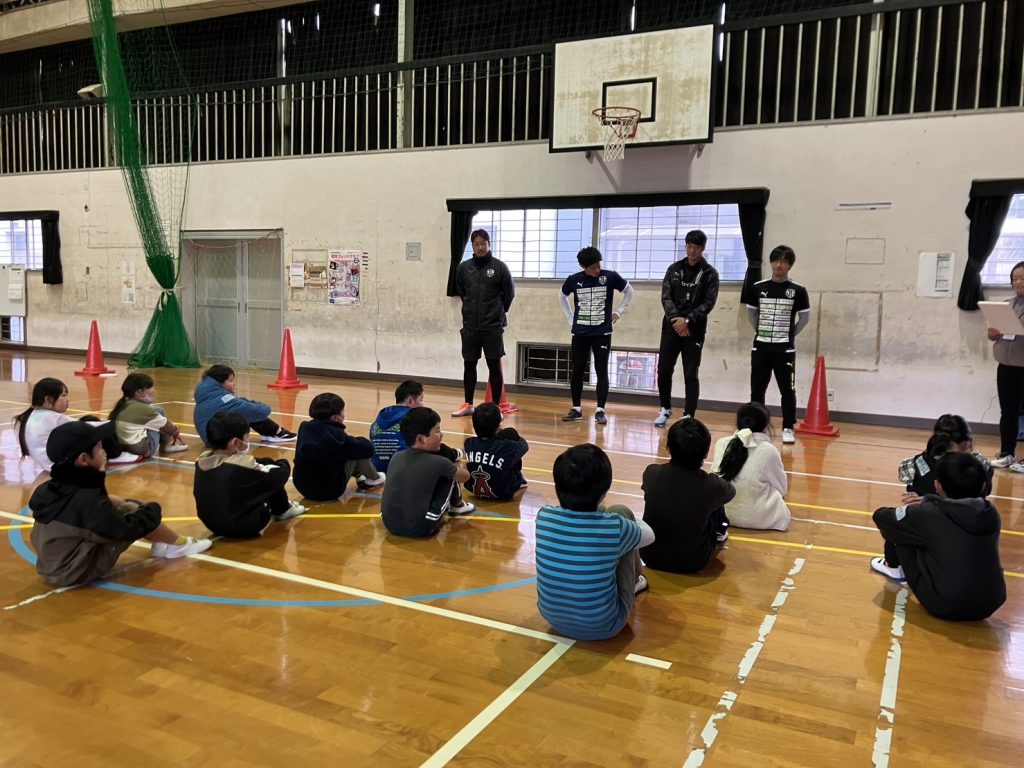2024年1月10日(水)、朝地体育館にて地元の小学1年生から5年生までを対象としたサッカー教室を行いました。