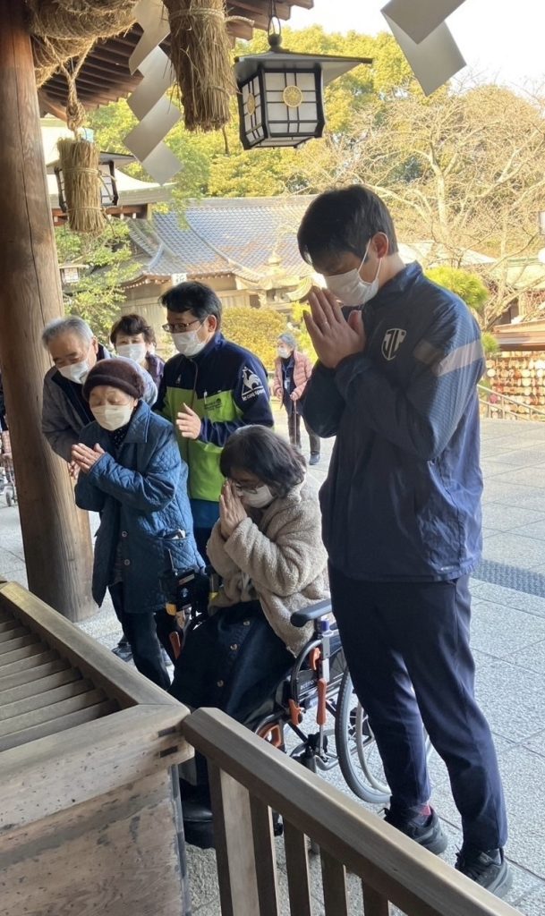 今回は2025年初めての交流だったため、利用者の皆さまと護国神社に初詣に行きました!!