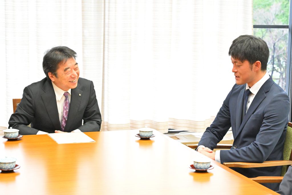 歓談では、足立市長が筑波大学出身ということで、同じく筑波大学出身の永芳GM、八反田選手、木島選手と筑波大学の話題で盛り上がる場面もありました。