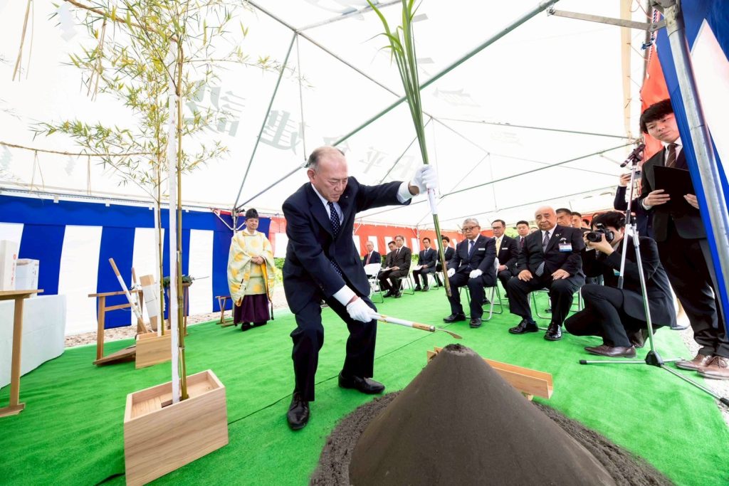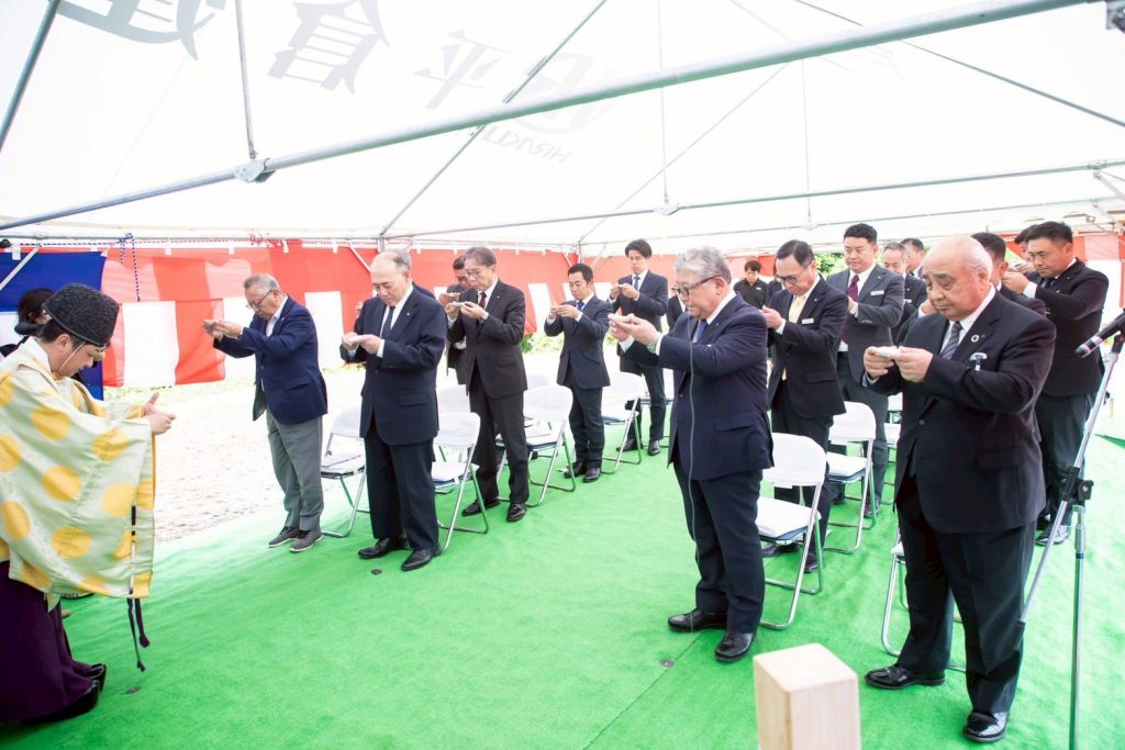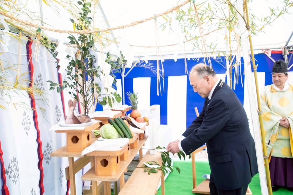 柞原八幡宮の長澤周一郎禰宜による神事が厳粛に執り行われ、 地鎮の儀、玉串奉奠が出席者より行われました。