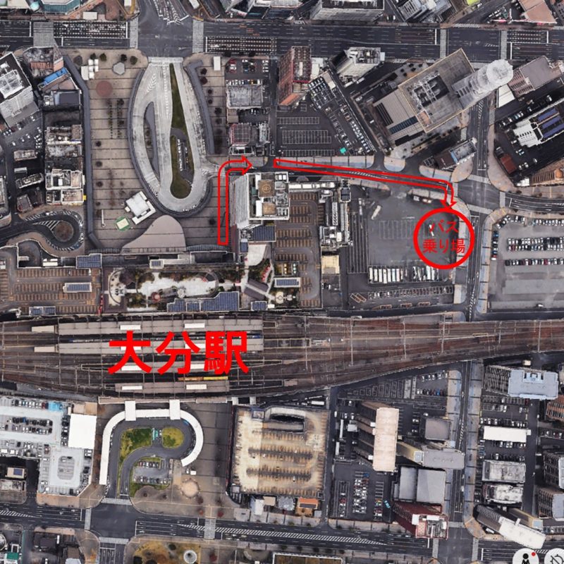 大分駅要町バス乗り場(帰りの到着もこちらになります)