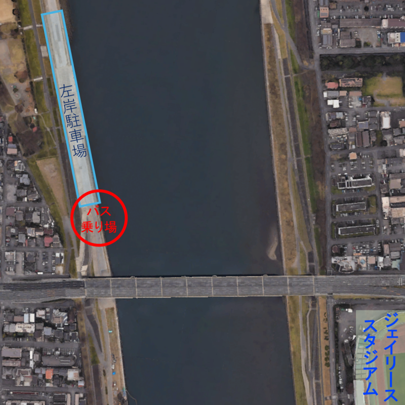 大分駅要町 → 河川敷駐車場 → ジェイリーススタジアム