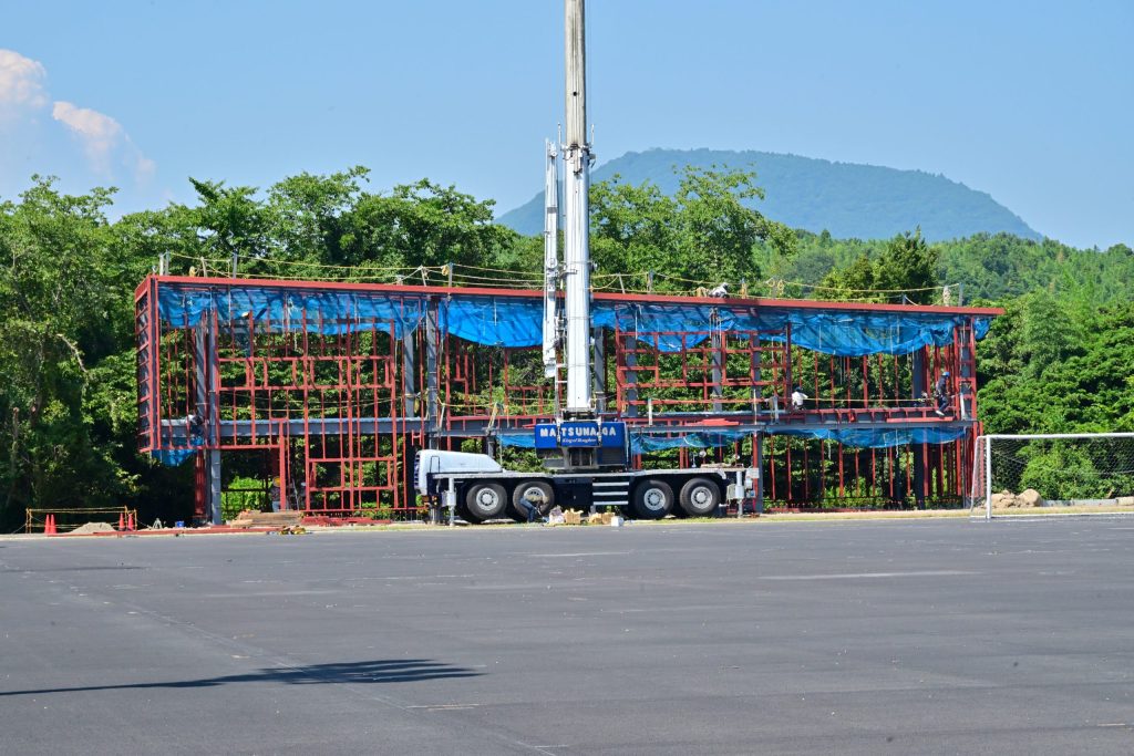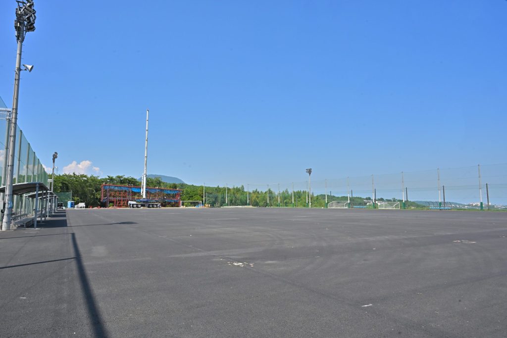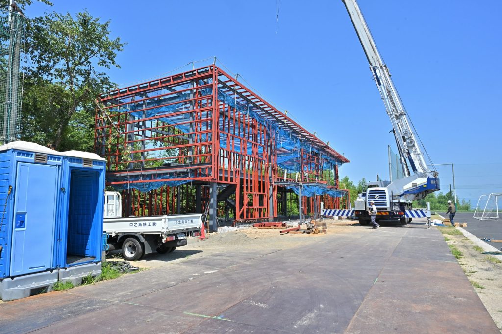 上原サッカー場は管理棟の建設が進んでおります。