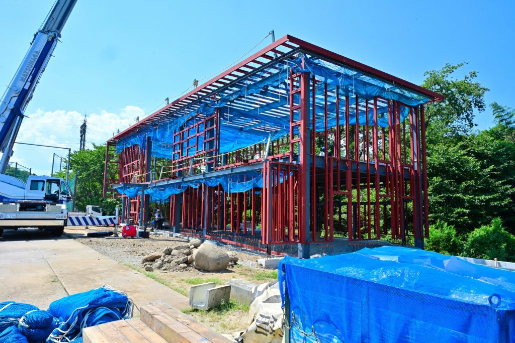 2階部分まで鉄骨が組みあがり、全貌が見えてきました。