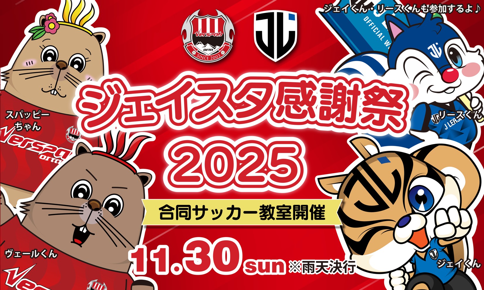 この度ジェイリーススタジアムで開催される「ジェイスタ感謝祭」でヴェルスパ大分との合同サッカー教室を実施することになりましたので、お知らせいたします。