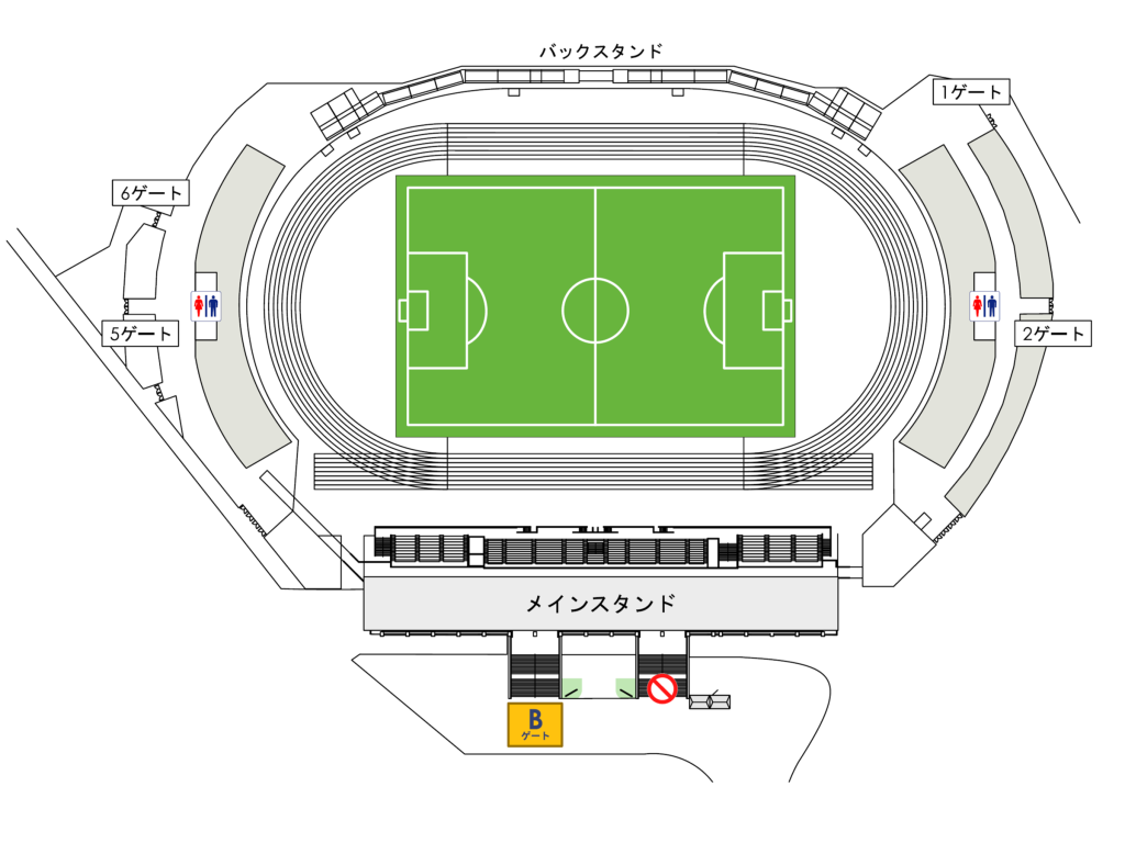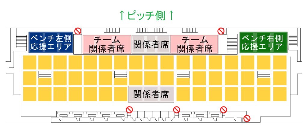 ・バックスタンド、ゴール裏スタンドでの観戦はできません。