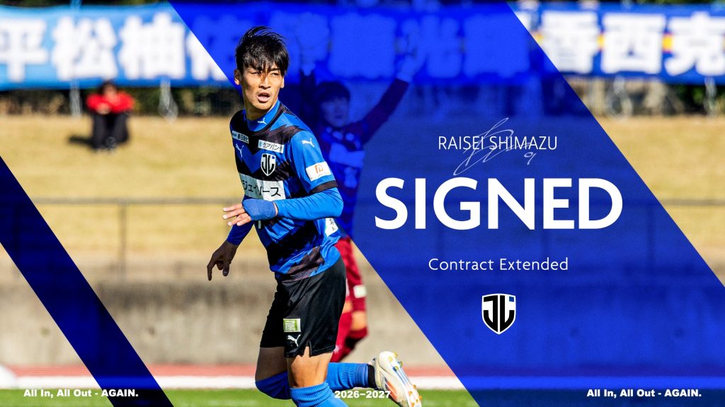 この度、島津頼盛選手と契約を更新し、引き続きジェイリースFCでプレーすることとなりましたのでお知らせいたします。