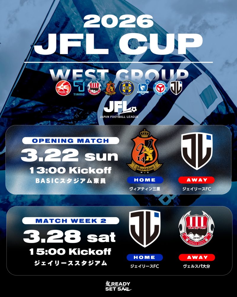 この度、2026年のシーズン移行期間中に行われる、JFL CUP 第1節、第2節の試合会場が決定いたしましたので、お知らせいたします。