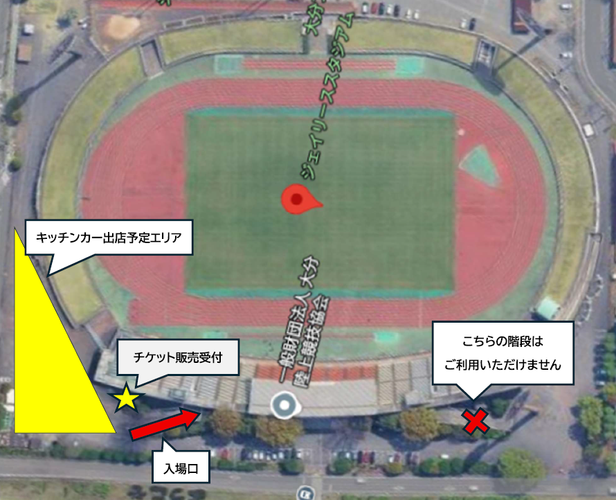 ジェイリーススタジアムの入場上限は15,943名となります。なお、お席はすべて自由席です。