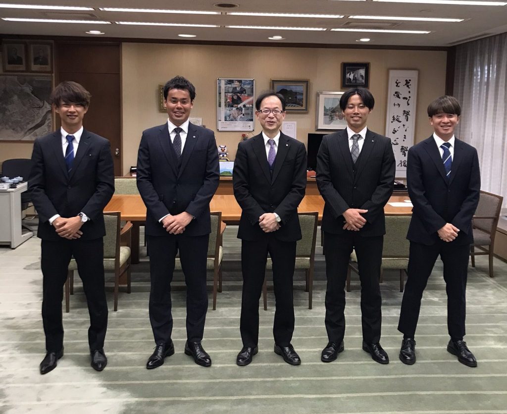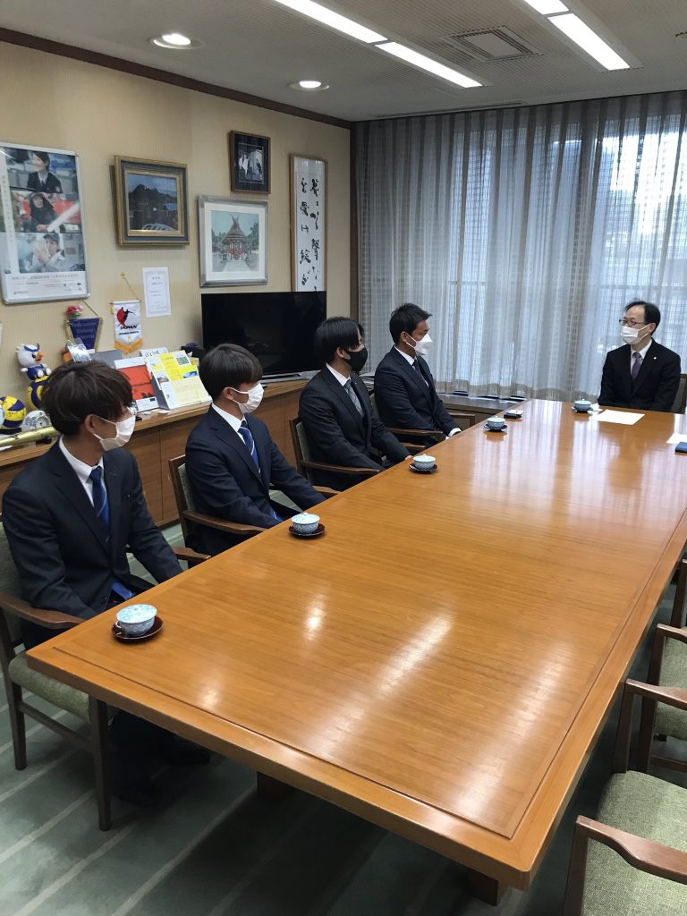 2月21日(火)17時より、永芳卓磨監督兼選手、今吉晃平主将、八反田康平副主将、松本怜副主将が佐藤樹一郎大分市長を表敬訪問いたしました。
