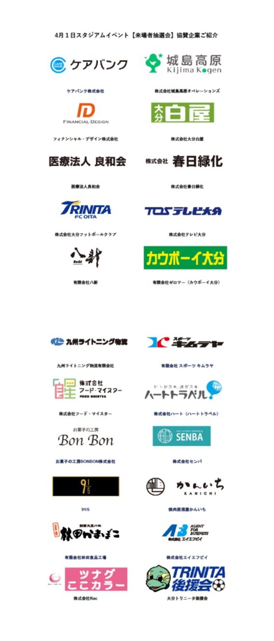 有限会社林田食品工場・株式会社エイエフビイ・株式会社Rac・大分トリニータ後援会