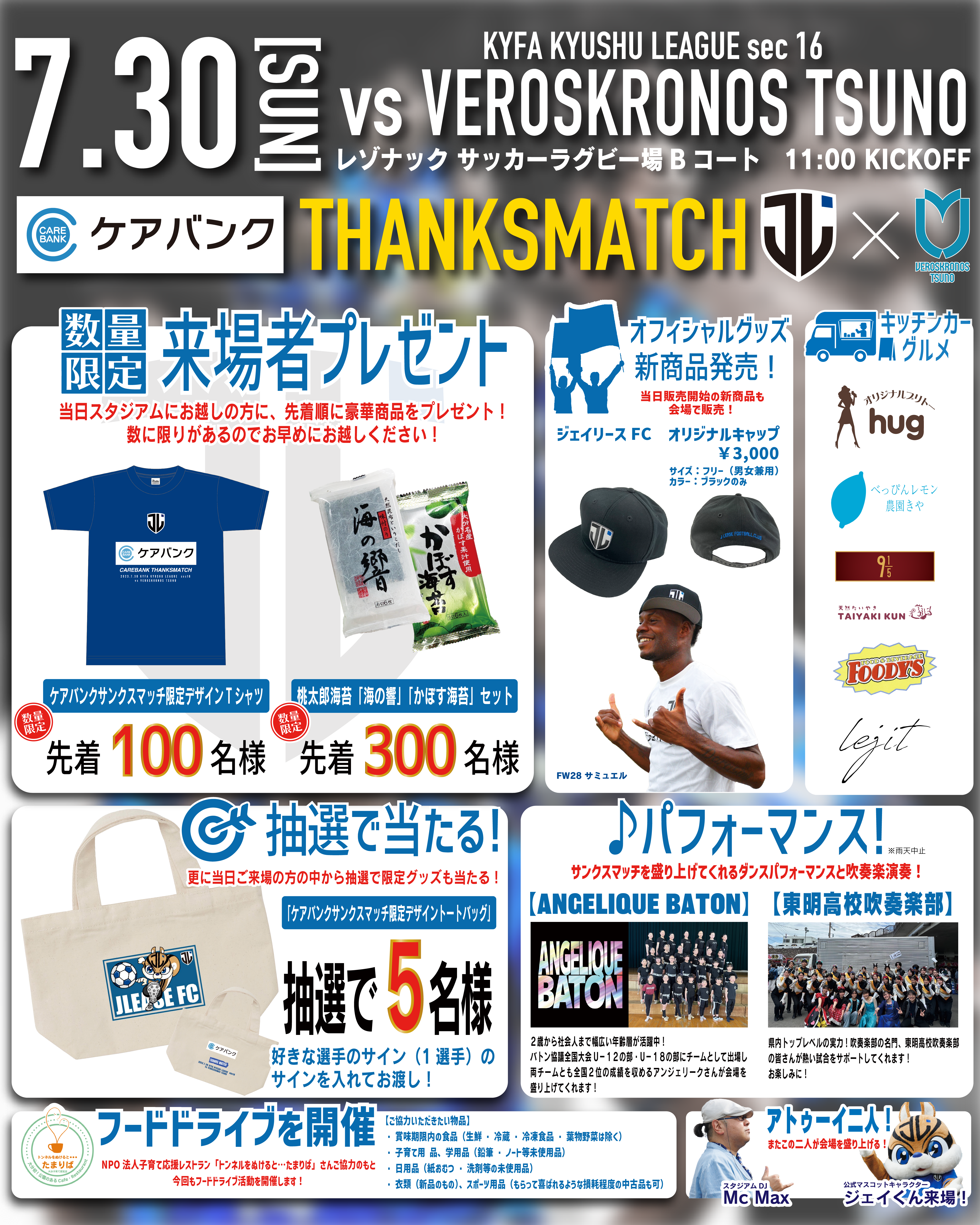 次節7月30日(日)はケアバンクサンクスマッチです!