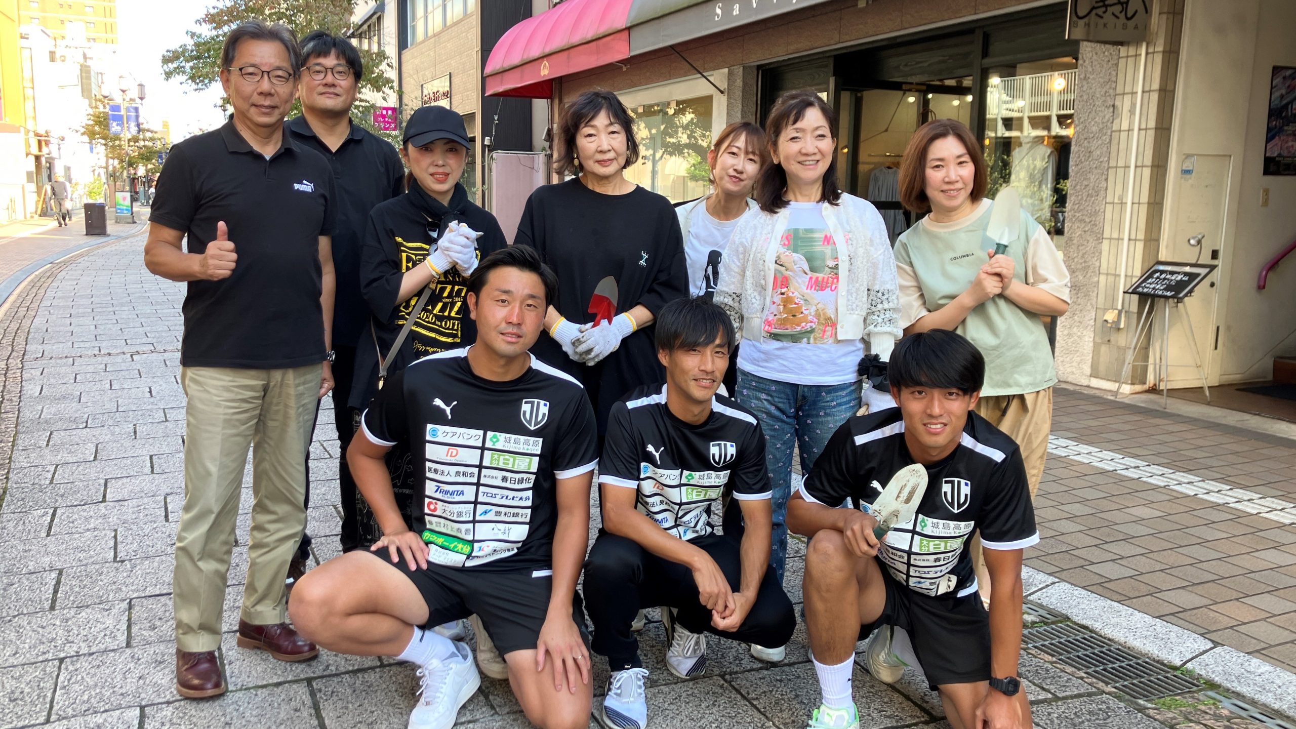 10月2日(月)に木島悠選手、岩﨑知瑳選手、佐藤昂洋選手、榎GMが、府内5番街商店街にてプランターのお花を植替えました。
