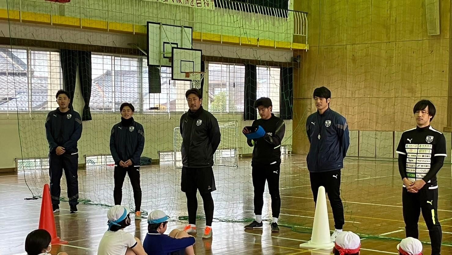 1月22日(月)に、木島悠選手、岩﨑知瑳選手、宮地裕二郎選手、池田達哉コーチ、大野春佑主務、そして高松大樹CROにて宇佐市立四日市北小学校を訪問いたしました。