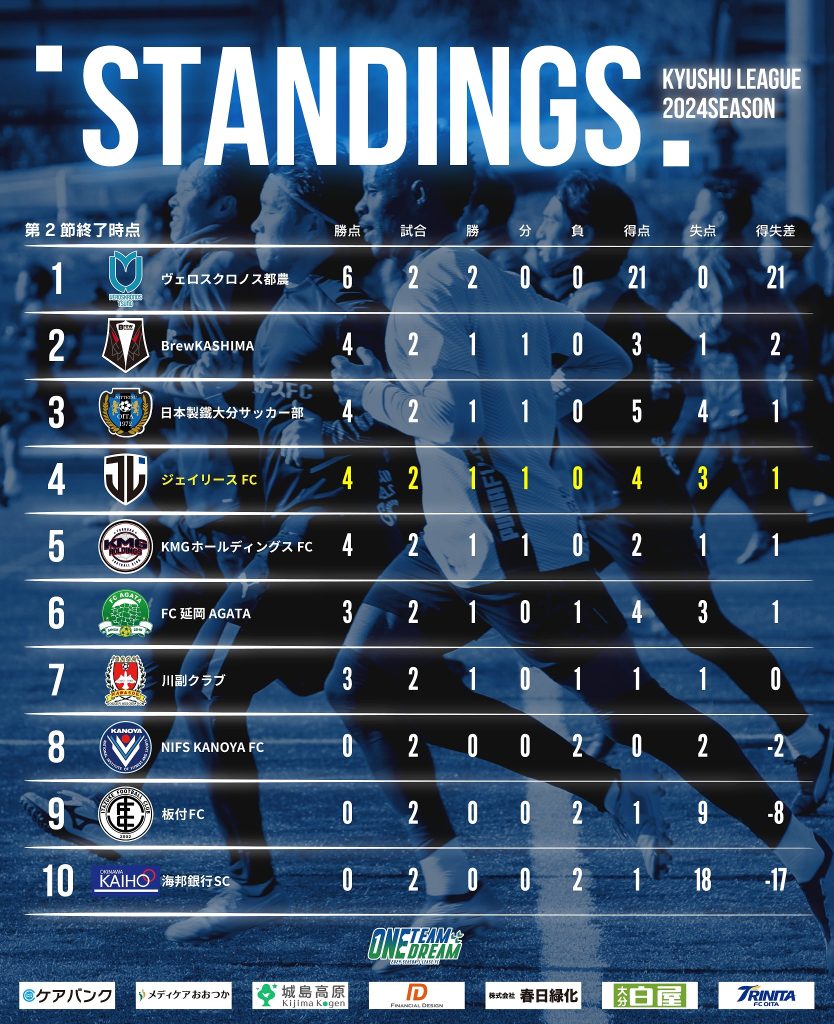 KYFA第52回九州サッカーリーグ順位表