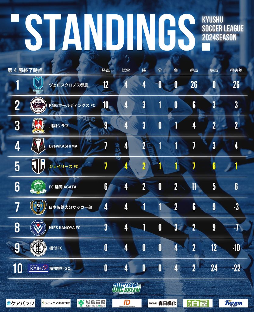 KYFA第52回九州サッカーリーグ順位表