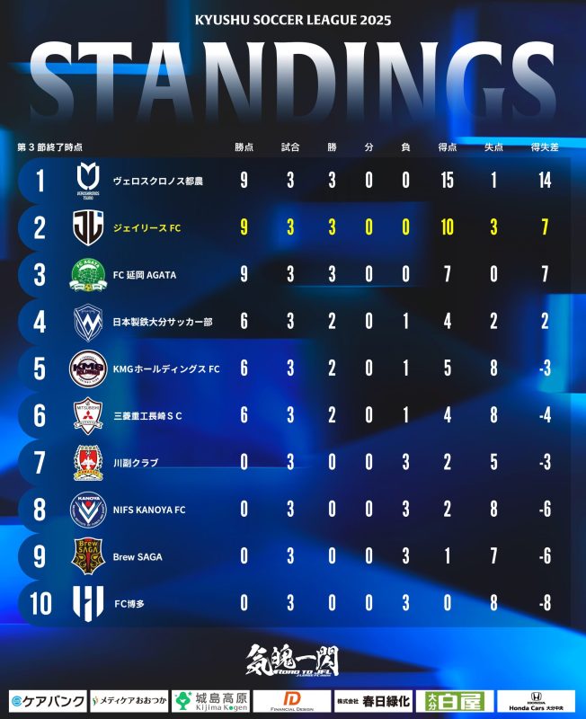 第52回九州サッカーリーグ順位表